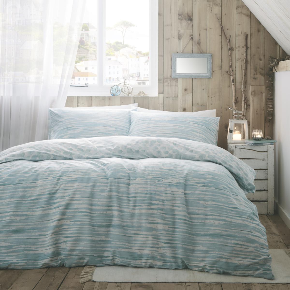 Natures textures are captured in Shore, a truly reversible duvet cover. Each side depicting a delicate coastal texture in a soft duck egg tone on a warm sandy base. Perfect to drift off to sleep in.