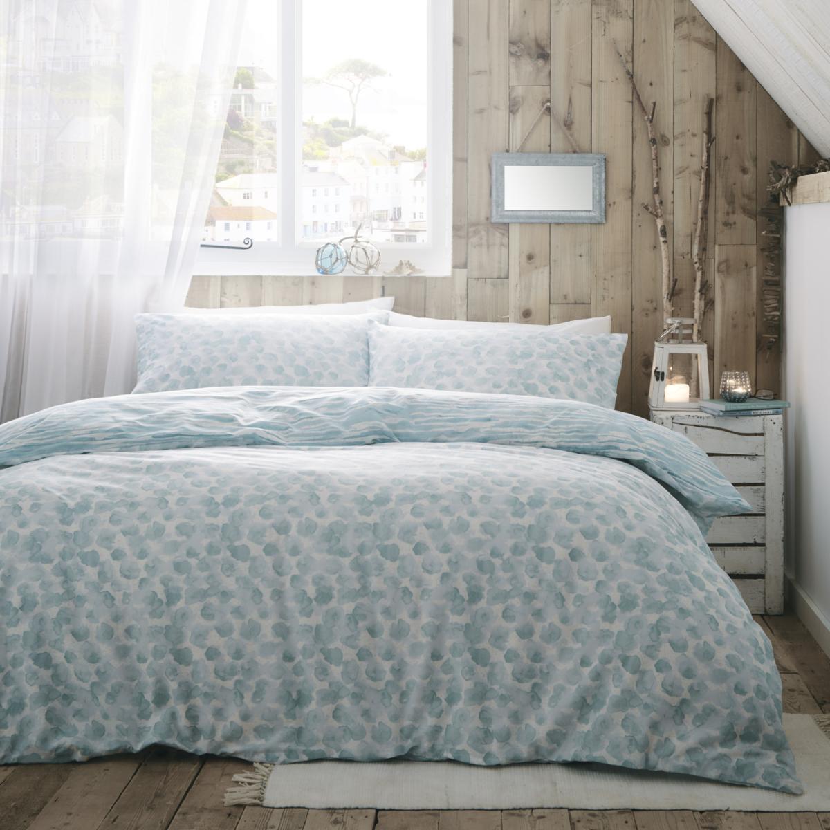 Natures textures are captured in Shore, a truly reversible duvet cover. Each side depicting a delicate coastal texture in a soft duck egg tone on a warm sandy base. Perfect to drift off to sleep in.