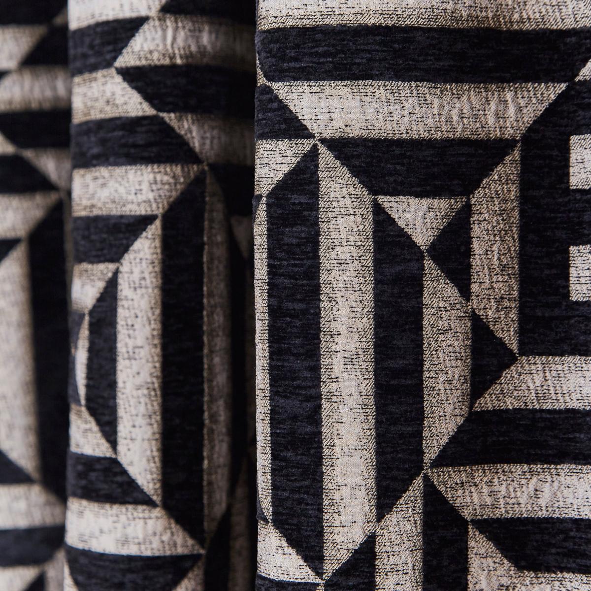 * Includes 2 x curtain panels * Bold Geometric pattern * Chenille Jacquard face fabric * Contains recycled materials * Fully lined * Matching cushion available Immerse yourself in modern elegance with the Shoreditch curtain collection, showcasing a striking geometric motif on luxurious chenille jacquard fabric, ideal for creating a focal point in any room. Crafted entirely from heavy weight materials, these curtains exude luxury and style. Made in various sizes, they grant you the freedom to personalise your home decor effortlessly.
