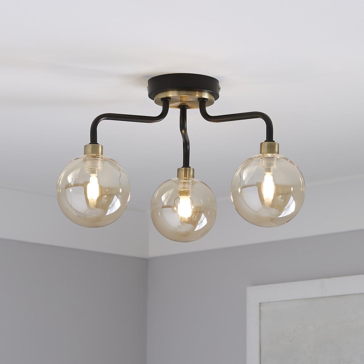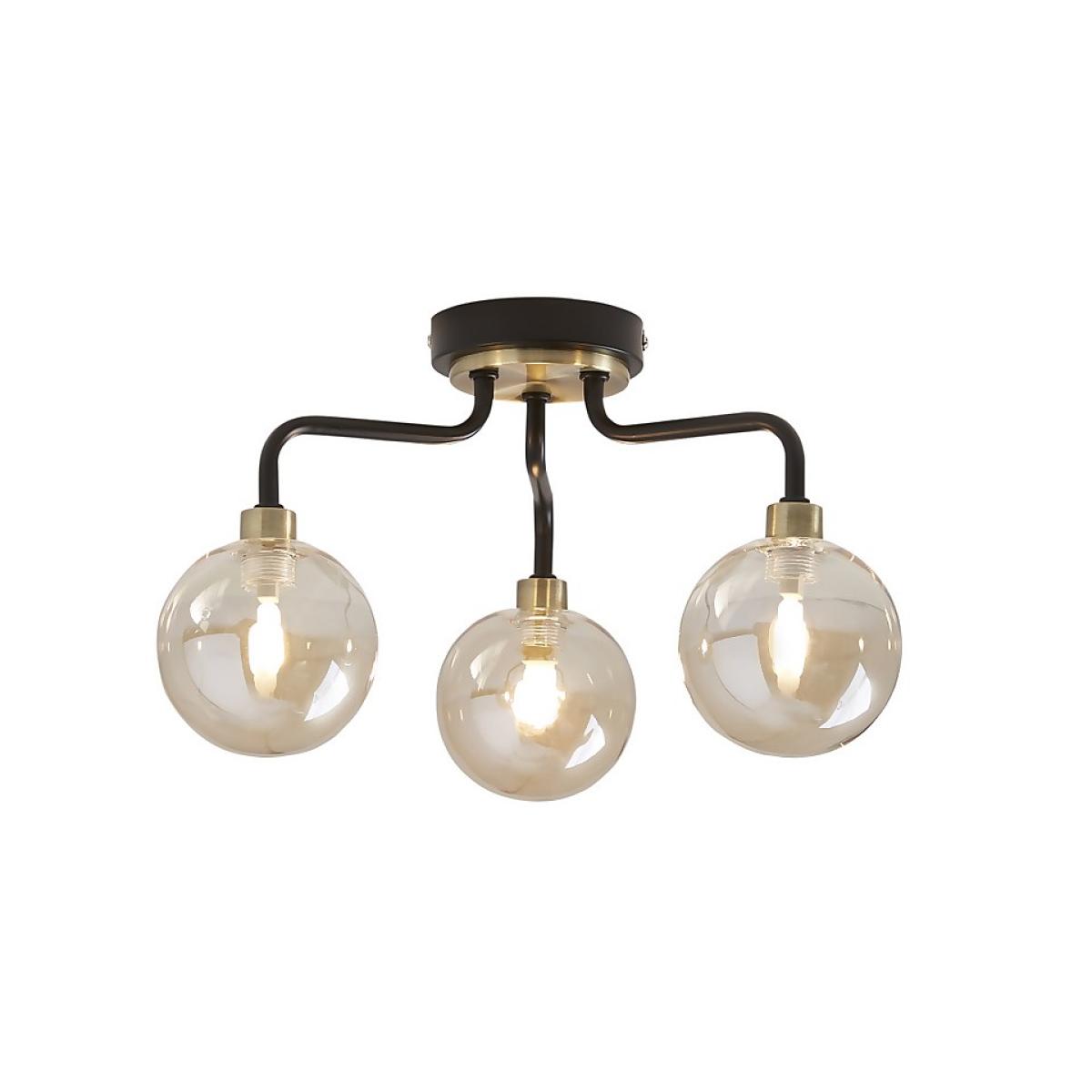 Add a classic industrial look with a modern twist to your space with the Shoreditch three arm semi flush ceiling light. The satin brass and matt black finish complement the champagne coloured glass shades to make a real statement light.