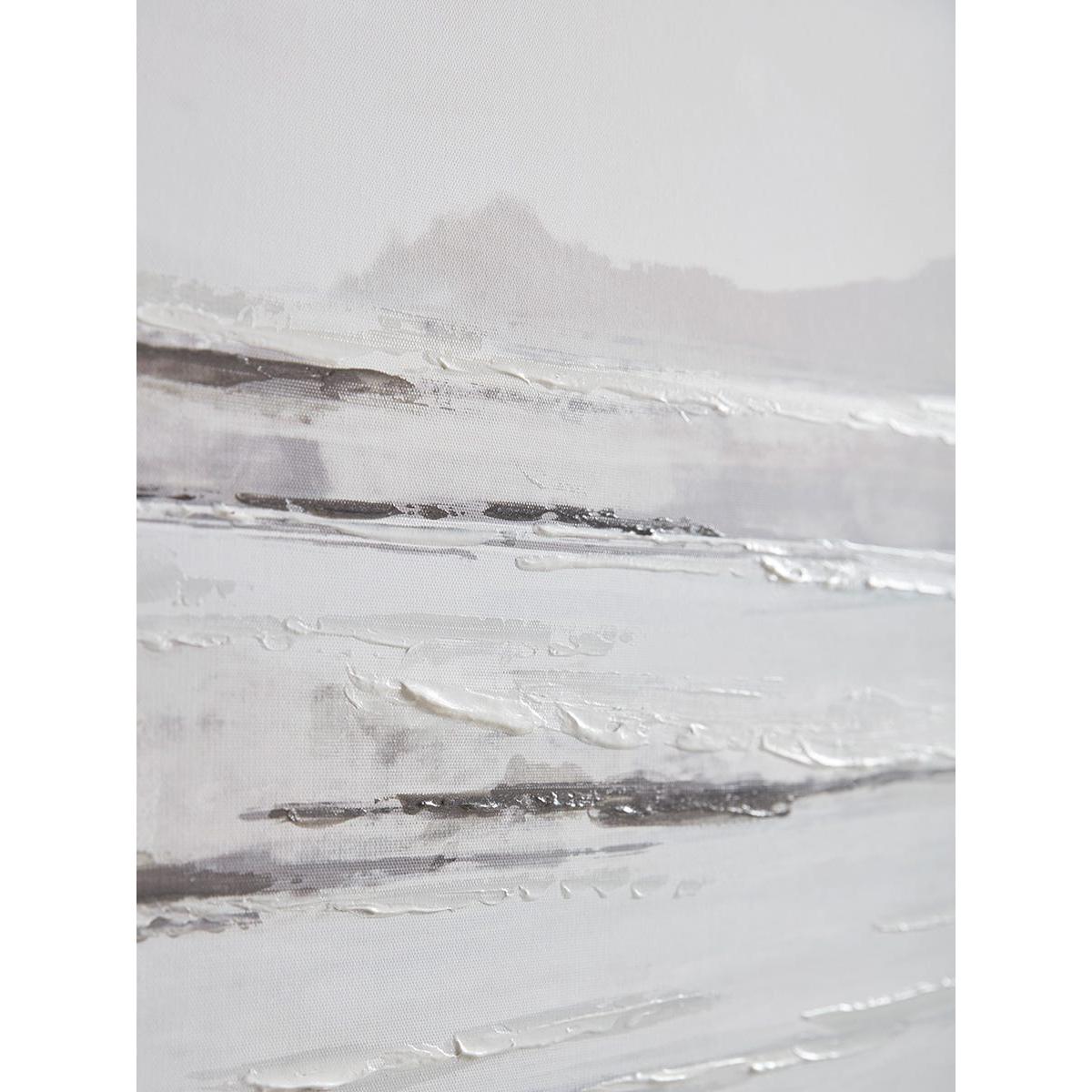 The stark beauty of a winter’s day at the coast is portrayed in this atmospheric wall canvas. Low, white crested waves lap the rocky shoreline in a seascape of cool, muted tones. Hand-finished for an authentic textural appeal, the canvas has a floating wooden frame for a more polished look.