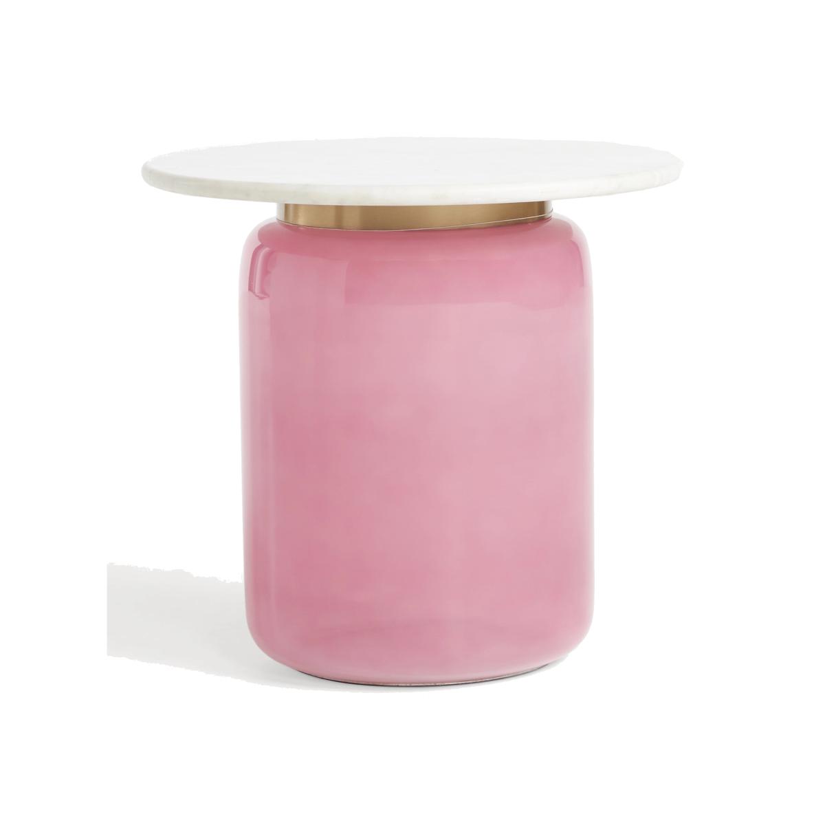 Beautifully crafted of gleaming glass and smooth marble, this chic side table lends an effortless elegance to bedsides and couch ends alike. * Glass side table featuring a marble top and brushed-brass detailing * Wipe clean with soft cloth. Avoid using chemical cleaners * This piece is intended for indoor use * No assembly required * Imported