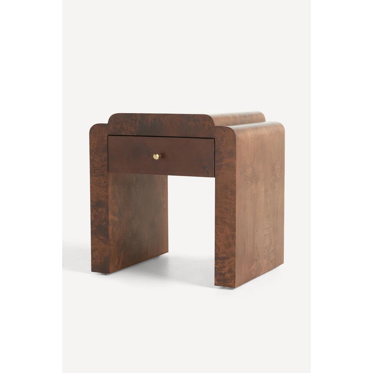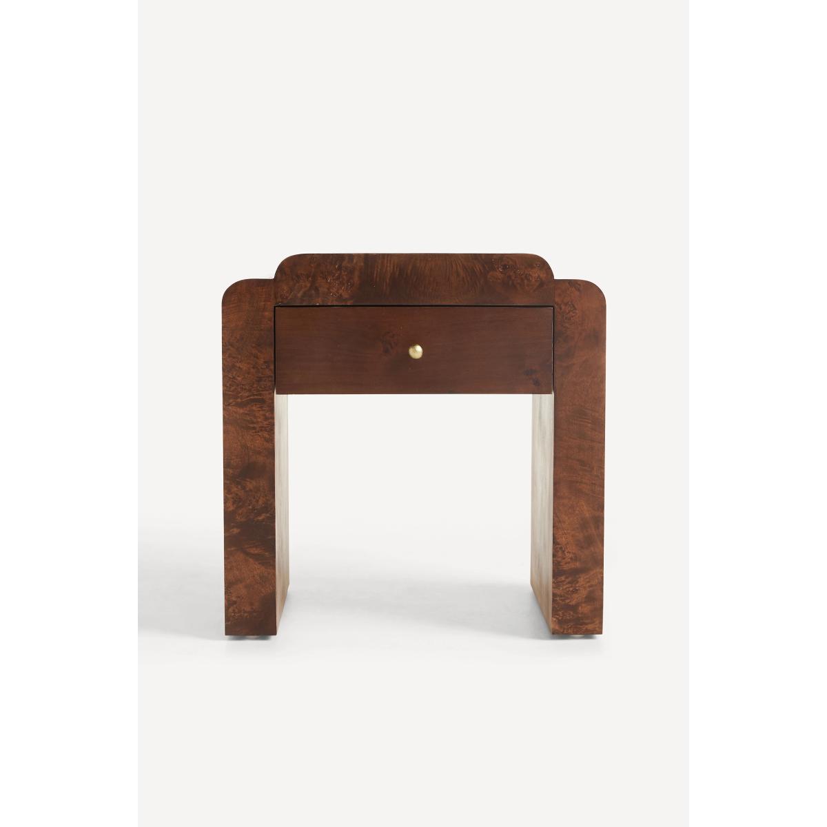 Characterised by its natural burl wood finish, the Shura Table functions as a sought-after bedside storage solution. Shura Burl Nightstand by Anthropologie in Brown