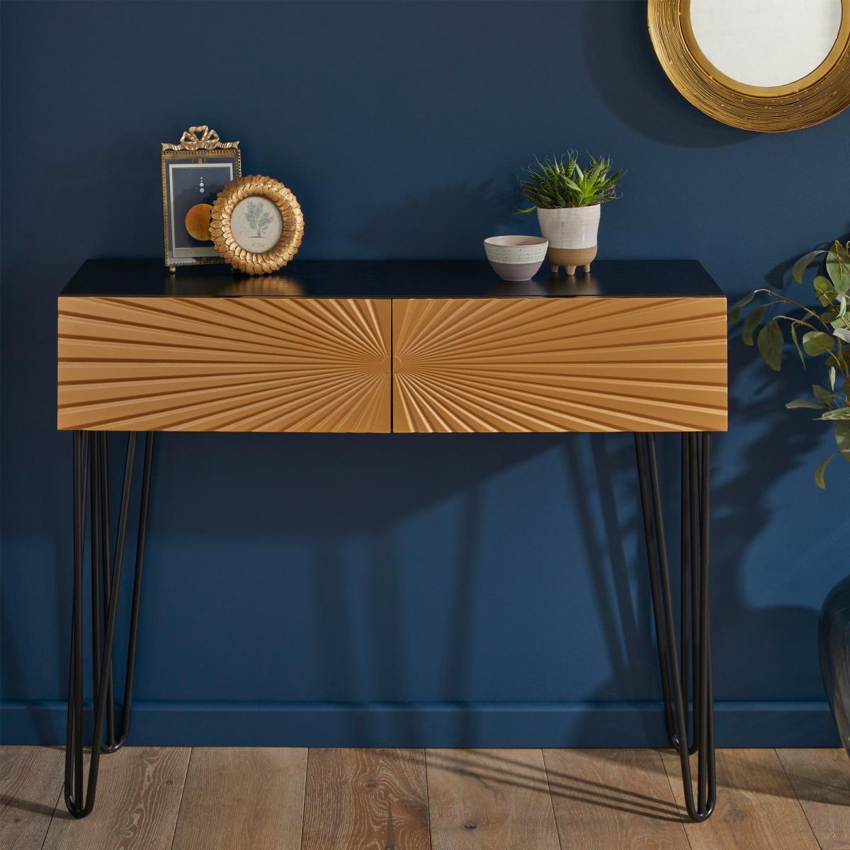 Looking for a console table that will add a touch of vintage-inspired glamour to your home? Look no further than the Shyla 2 Drawer Console Table! And with two spacious storage drawers, you'll have plenty of room to store all of your favourite things, from magazines and books to remotes and chargers.