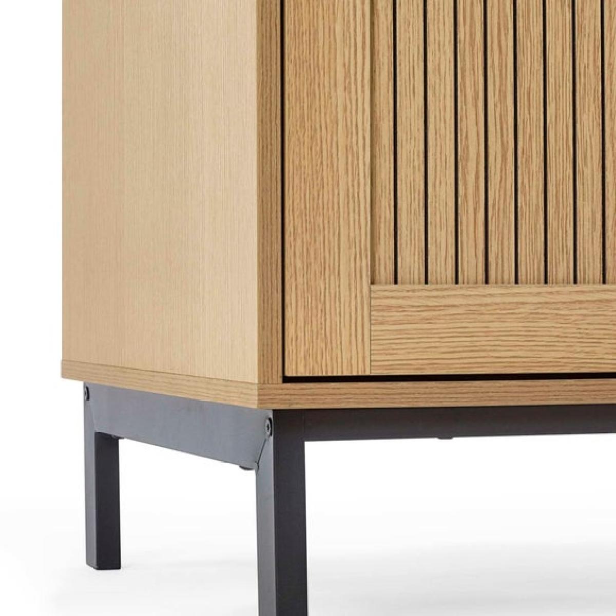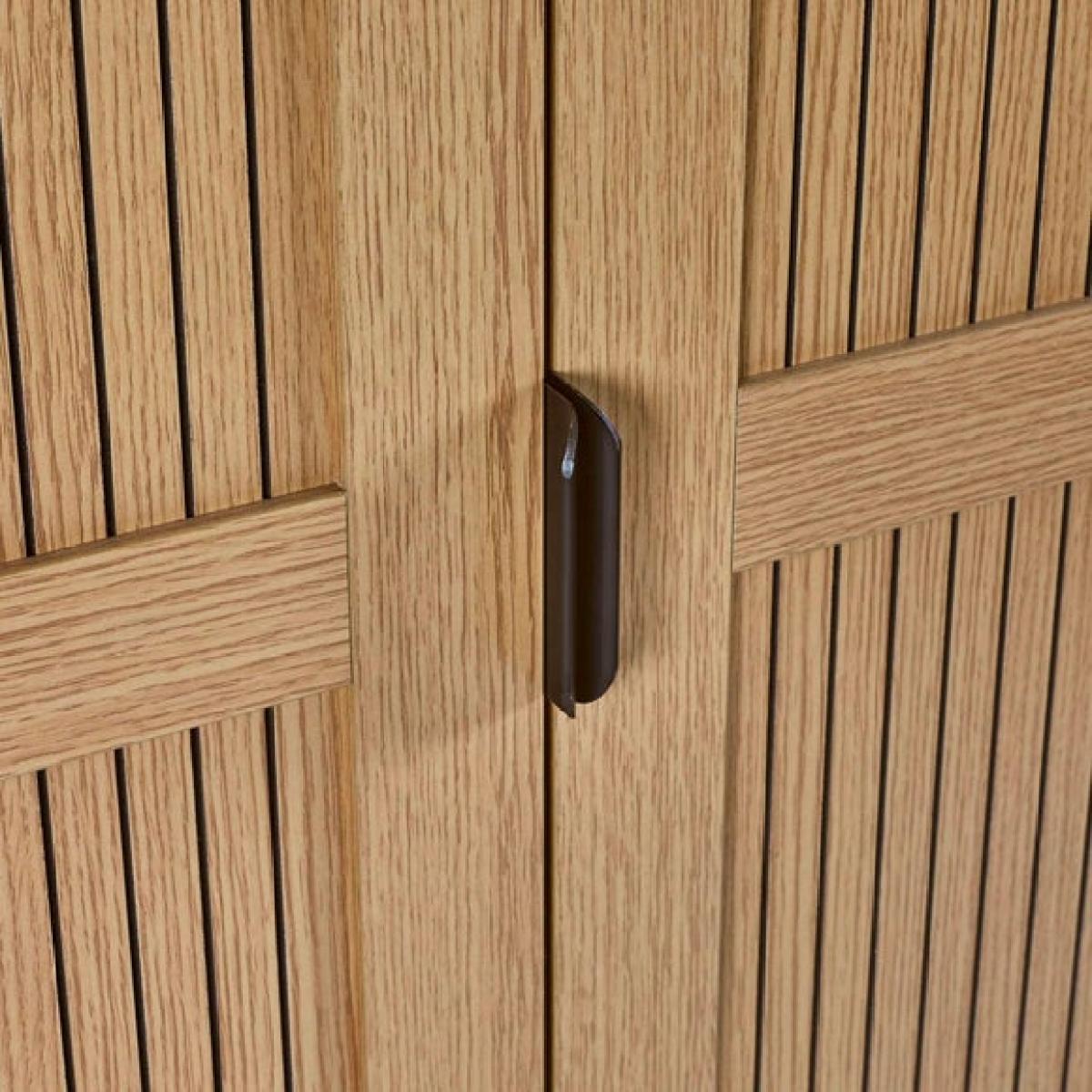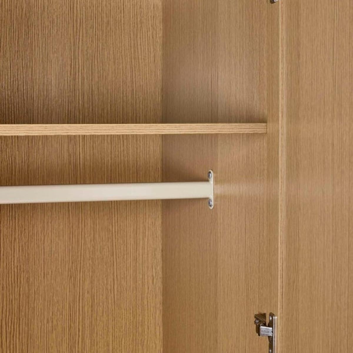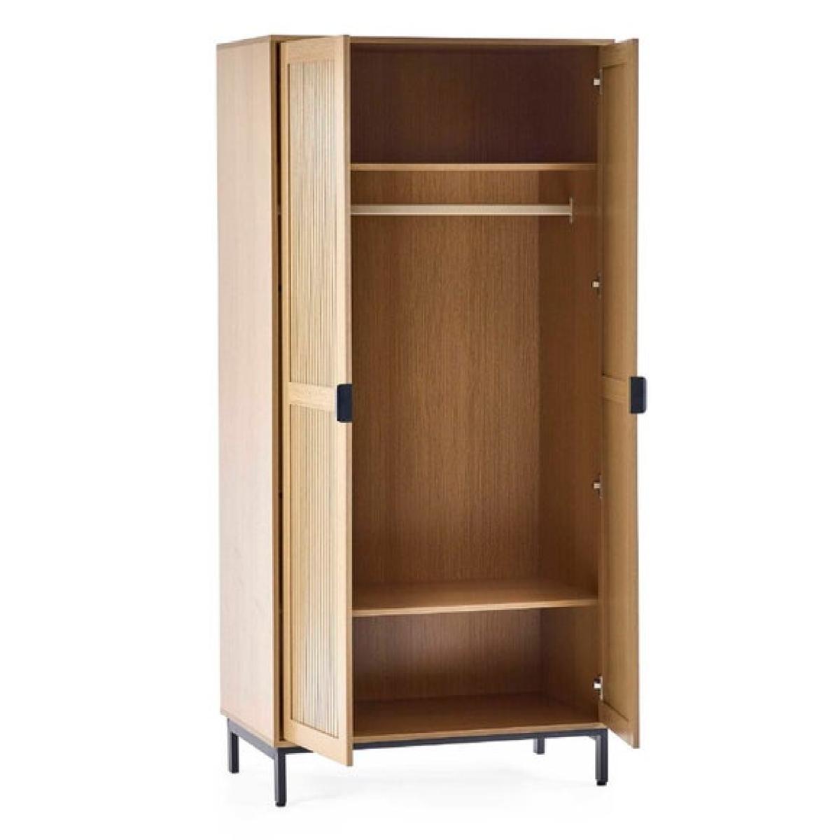* Sleek wardrobe * Slat effect front * Metal handles and legs This wardrobe combines style and practicality to keep your bedroom organised. Inside, you’ll find a full-length hanging space and two shelves, giving you plenty of room for clothes and accessories. The exterior features a sleek design with subtle detailing that adds a modern touch to your space. Sturdy legs and refined handles complete the look, making this piece both functional and attractive.