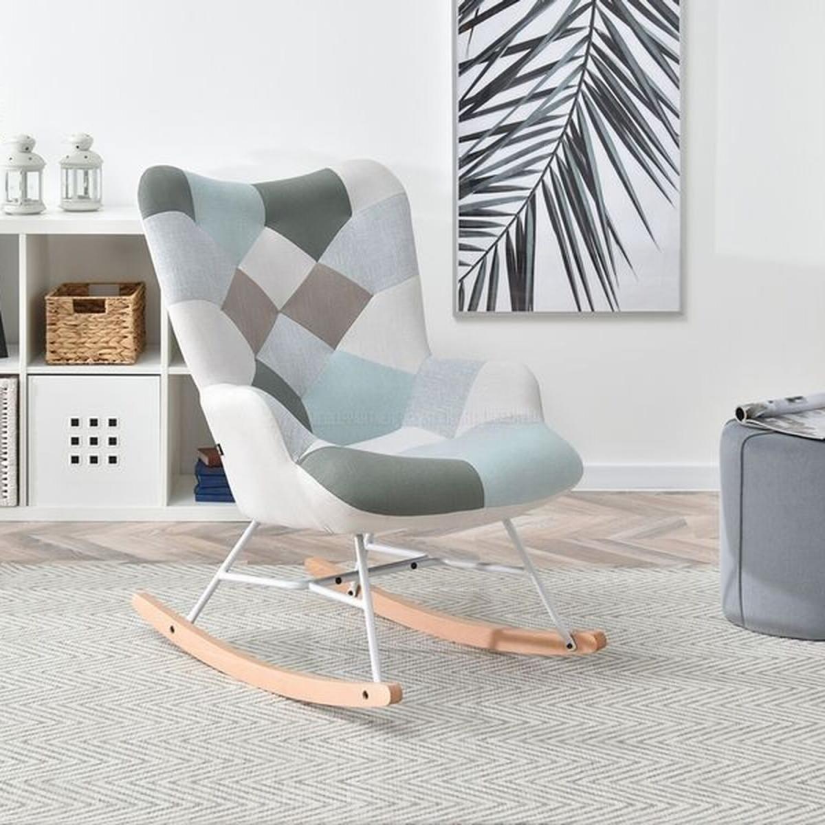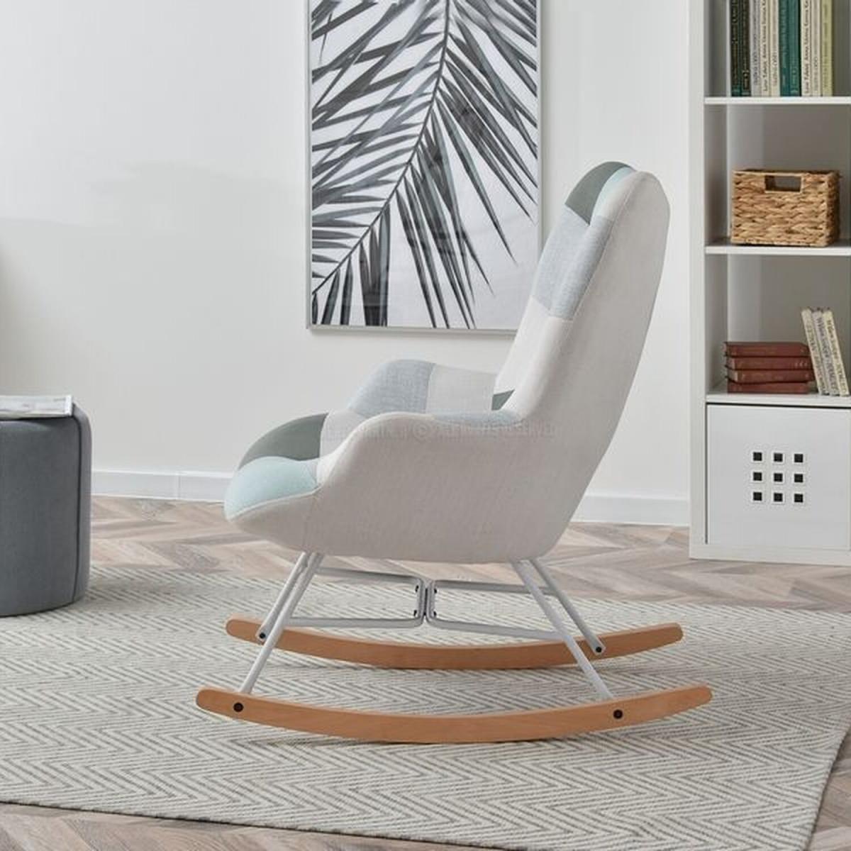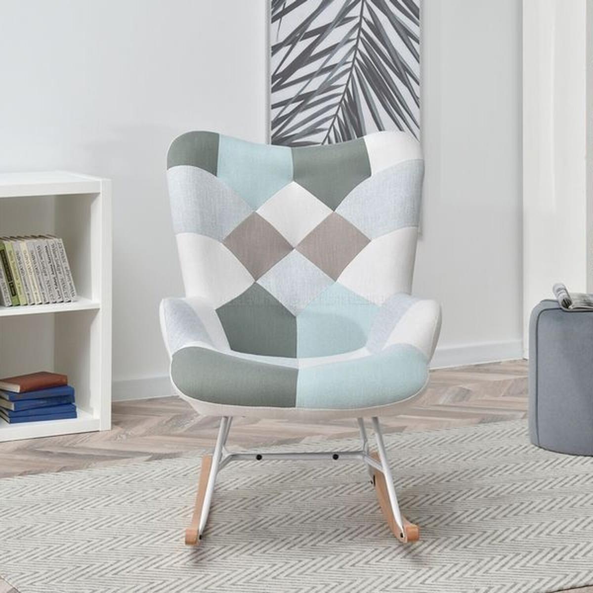 Sibil Patchwork Rocking Chair - Blue & Grey