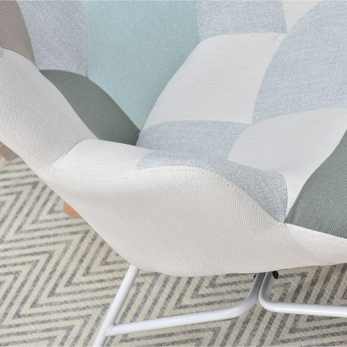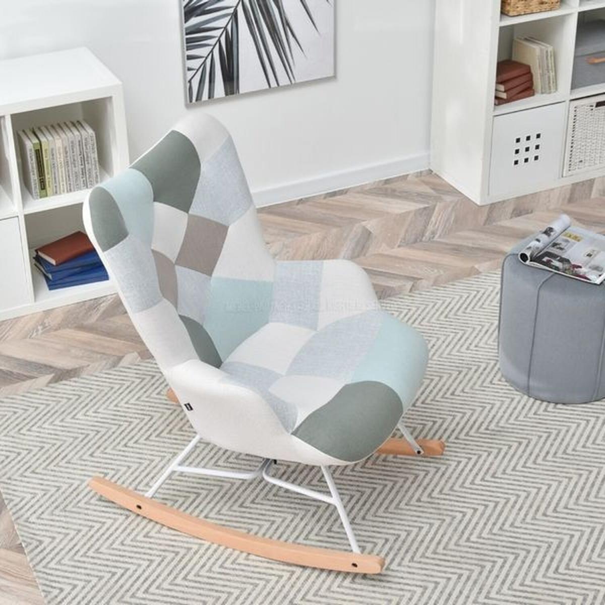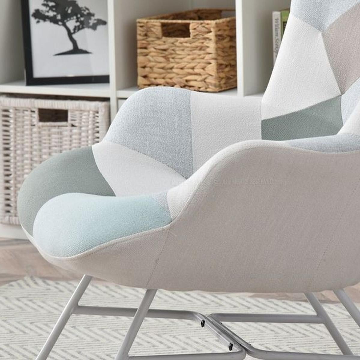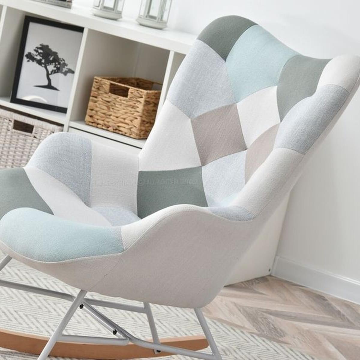 Very comfortable rocking chair in eye- catching patchwork design. The colours are timeless. The seat is super comfy and the armrests will provide the greatest relax. The white metal base and the wooden skids work together perfectly. The chair has been made using the best quality materials.
