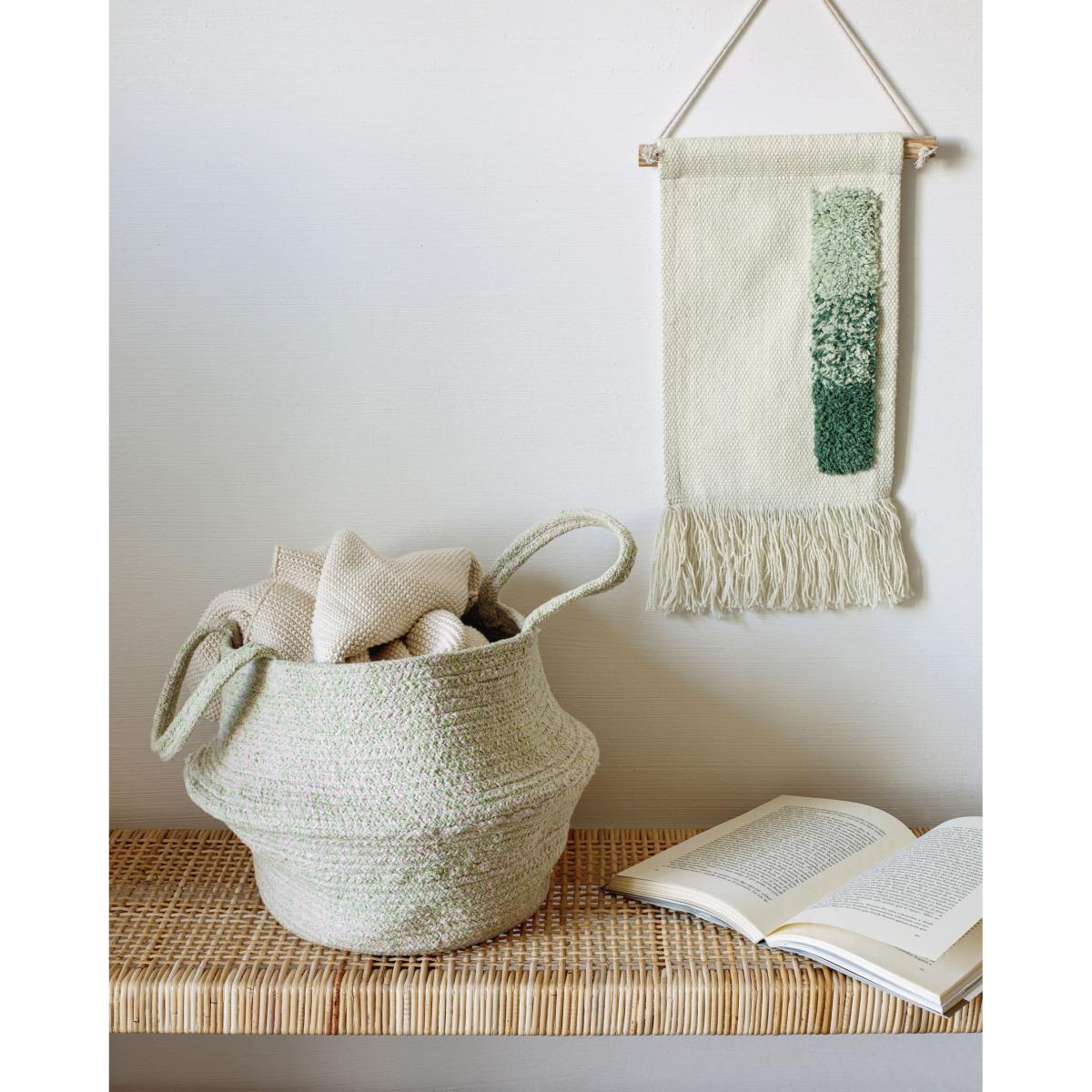 I love this little green basket for its natural, handmade feel, which adds warmth and texture to a space. It works particularly well in boho or coastal interiors, where its earthy tone and relaxed shape complement woven, linen, and rattan finishes. Practical styling tips include using it as a handy storage solution for throws in living rooms, or as a plant holder for statement greenery to bring life to a room. Its versatile size also makes it ideal for organising smaller items in bathrooms or bedrooms, helping to keep spaces tidy without sacrificing style.