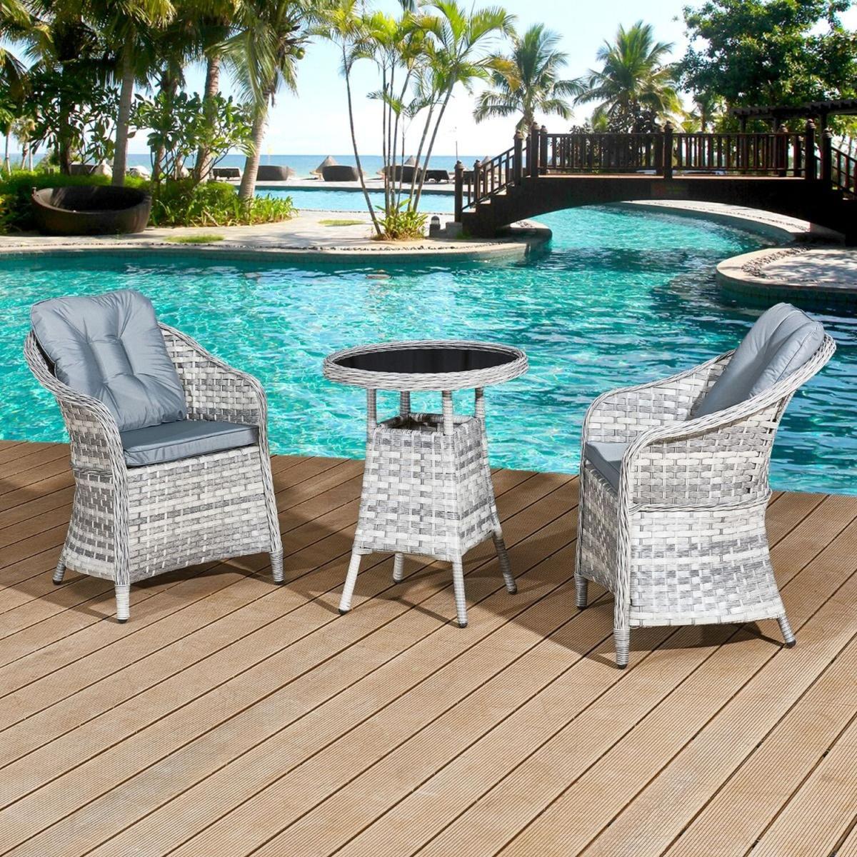 Sicilia Rattan 2 Seat Bistro Set - Dove Grey