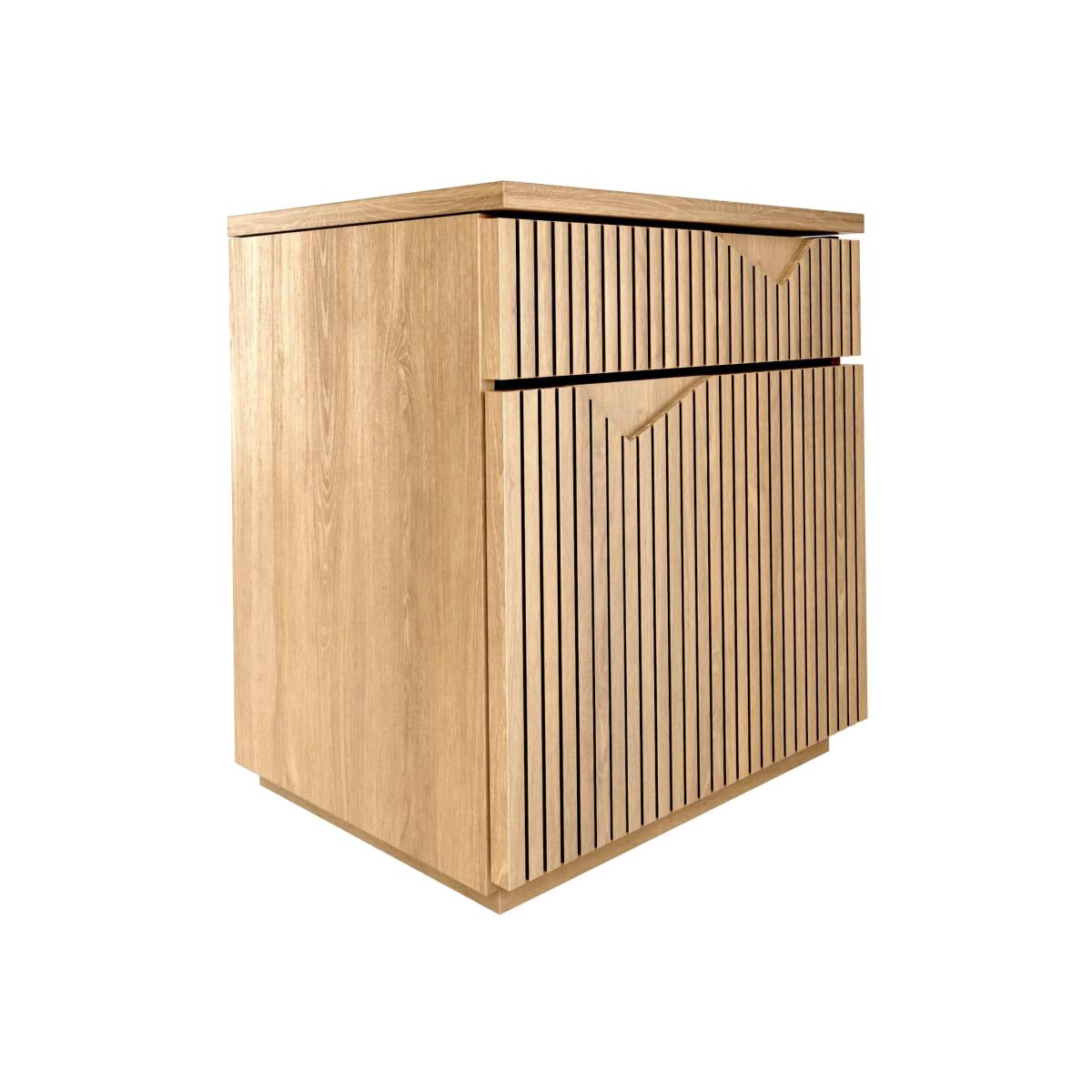 The Sicily bedside is a great choice for adding natural warmth and texture to both modern and scandi-inspired interiors. I love its clean lines and the subtle vertical slats, which give it a slightly relaxed yet refined look. It works well in bedrooms that feature neutral palettes, as it brings a touch of organic elegance, but it can also blend seamlessly into more eclectic spaces. For styling, try pairing it with simple ceramic lamps, a small stack of books, or some fresh greenery on top to keep the look minimal yet inviting. Its practical size and natural oak finish make it versatile, whether placed next to a sofa or beside a bed, offering both functionality and understated charm.