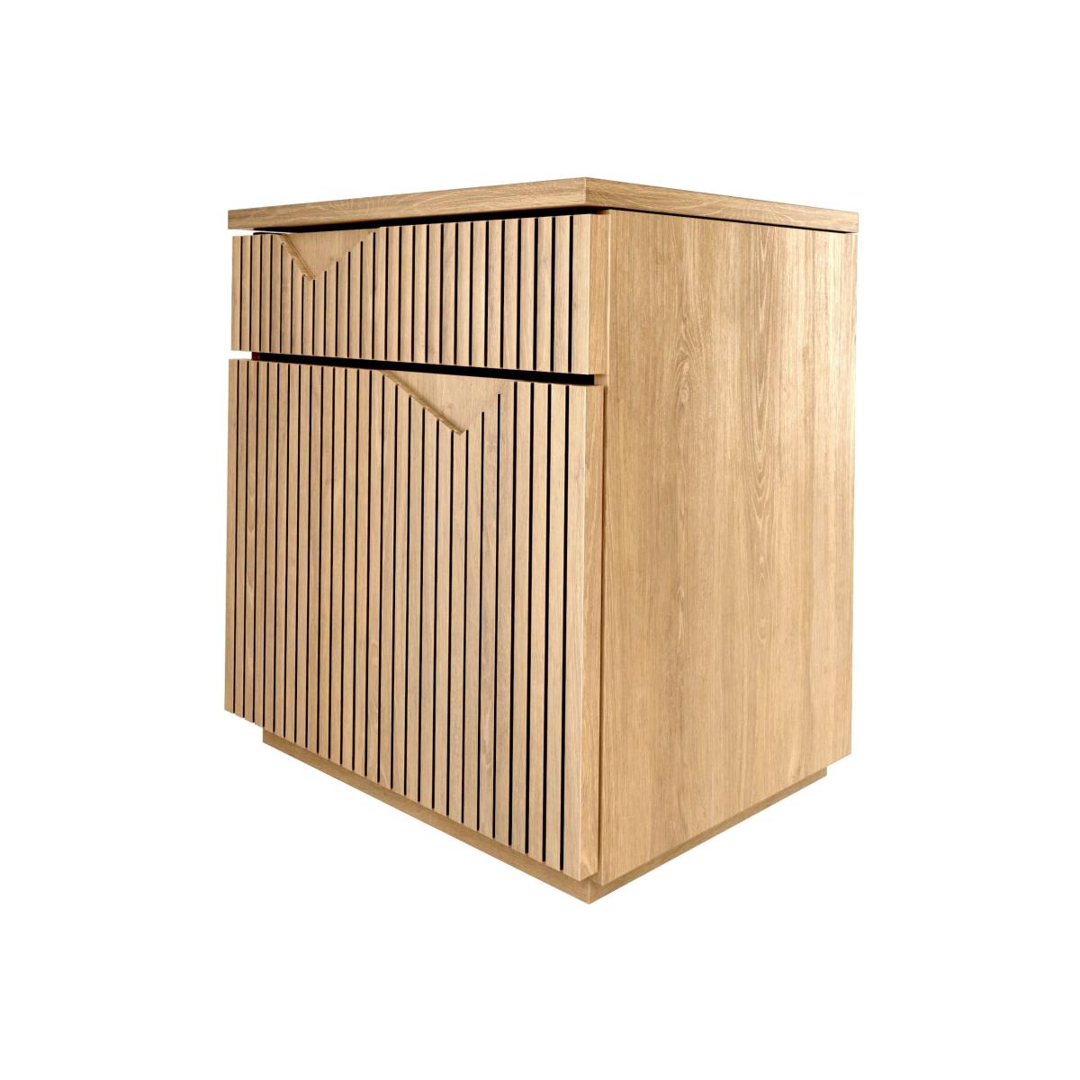 Beautifully designed with a floating tabletop and sleek vertical grooves, everything about our Sicily bedside drawers is dreamy. Available in two sizes and finishes, this wooden bedside table is the perfect accompaniment to any boudoir. Featuring two drawers of differing sizes to stow away your belongings, Sicily is the perfect piece to keep your bedroom space calm and clutter-free.