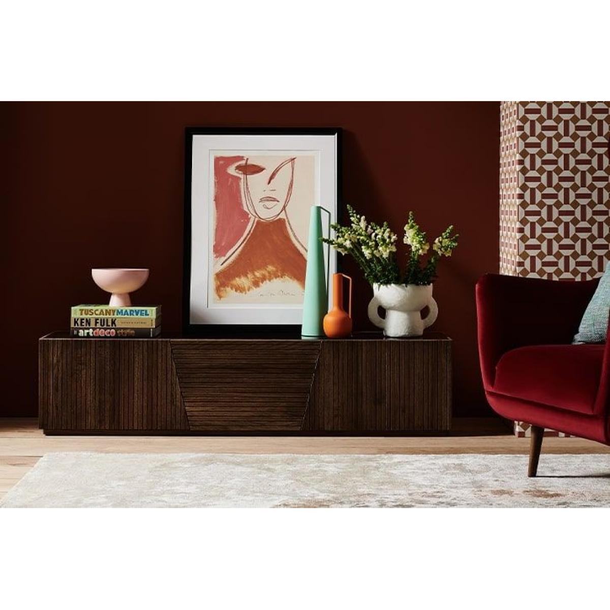 I love this piece for its sleek, contemporary appeal with a natural touch, making it a versatile choice for various interior styles. Its black finish oak offers a modern contrast to warm-toned furniture or can be paired with minimalistic decor for a more streamlined look. It works particularly well in open-plan living spaces or modern homes where you want to maximise storage without sacrificing style. Practical styling tips include layering with textured accessories on top, such as vases or framed artwork, and keeping the surface clutter-free. For a cohesive look, consider matching it with other black or wood-toned accents, while its generous storage is perfect for organising media equipment and clutter, keeping the space looking tidy and sophisticated.