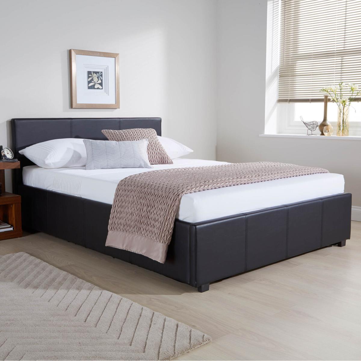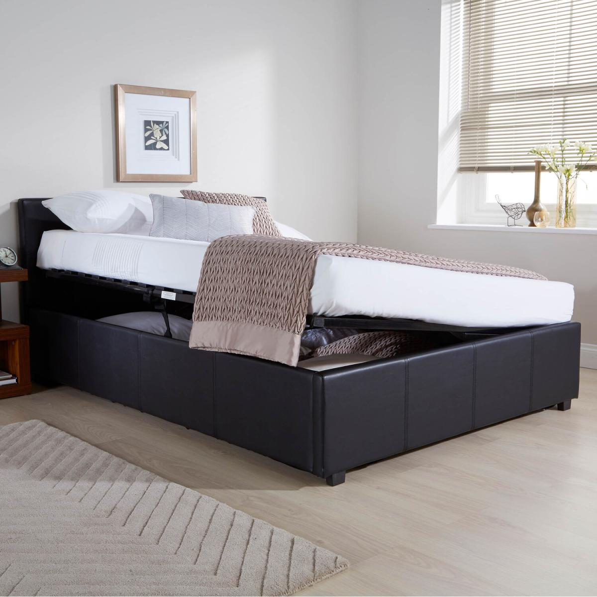This stunning side lifts ottoman bed offers an attractive combination of contemporary style and ample storage space. This beautifully crafted frame is finished in high-quality faux leather and complemented by a simple yet stylish stitched headboard. This is an ideal solution if space is at a premium in your bedroom as the ottoman base provides generous storage space for linen, blankets, towels or clothes. For ease of use, this stylish ottoman has colour coded holes that allows you to assemble the ottoman to lift up from the side of your choice. The base lifts easily with the help of a gas hydraulic system so you can access the lined storage area underneath the bed.