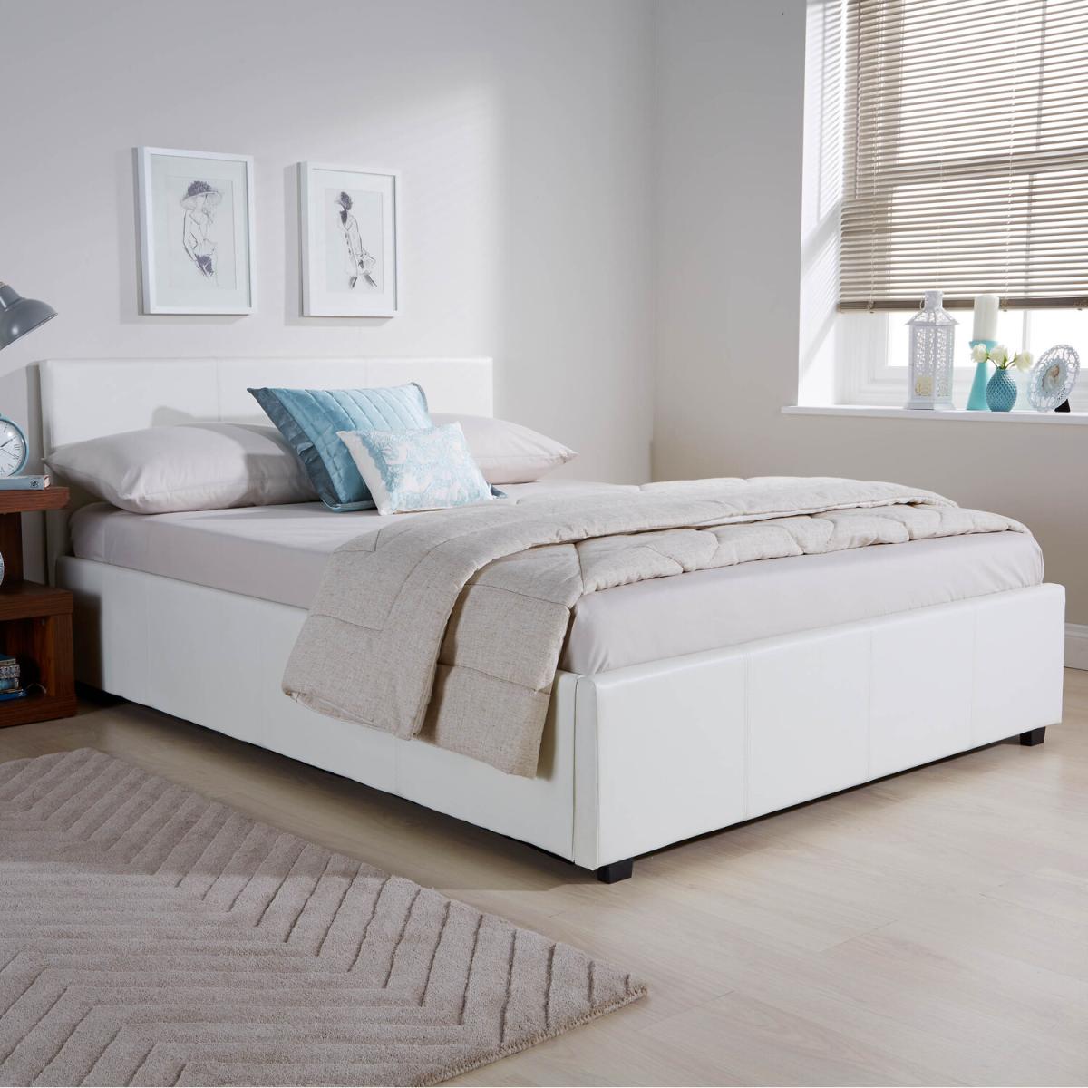 This stunning side lifts ottoman bed offers an attractive combination of contemporary style and ample storage space. This beautifully crafted frame is finished in high-quality faux leather and complemented by a simple yet stylish stitched headboard. This is an ideal solution if space is at a premium in your bedroom as the ottoman base provides generous storage space for linen, blankets, towels or clothes. For ease of use, this stylish ottoman has colour coded holes that allows you to assemble the ottoman to lift up from the side of your choice. The base lifts easily with the help of a gas hydraulic system so you can access the lined storage area underneath the bed.