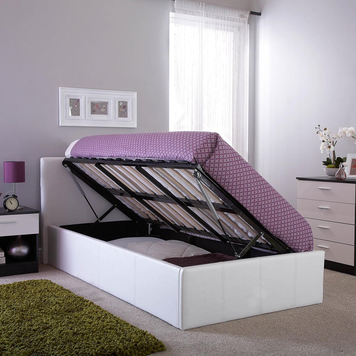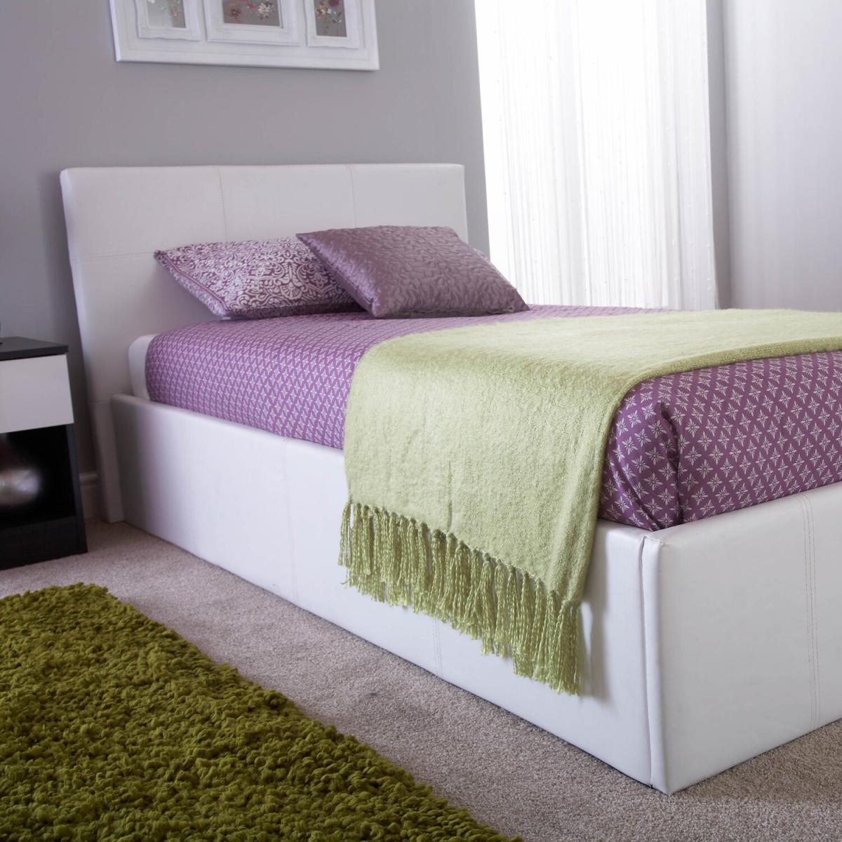 This stunning side lifts ottoman bed offers an attractive combination of contemporary style and ample storage space. This beautifully crafted frame is finished in high-quality faux leather and complemented by a simple yet stylish stitched headboard. This is an ideal solution if space is at a premium in your bedroom as the ottoman base provides generous storage space for linen, blankets, towels or clothes. For ease of use, this stylish ottoman has colour coded holes that allows you to assemble the ottoman to lift up from the side of your choice. The base lifts easily with the help of a gas hydraulic system so you can access the lined storage area underneath the bed.