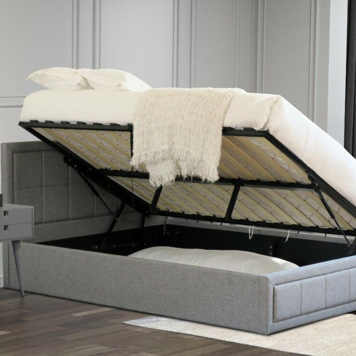 This ottoman bed frame is upholstered in beautiful grey hopsack linen fabric. This bed frame features a square-paneled headboard adding a modern finish to the overall look guaranteeing this bed to become the focal point of any bedroom. The contemporary design and classic, neutral grey is sure to effortlessly fit in with your bedroom interiors. It features under-bed storage with easy gas-lift access to make opening and closing the bed hassle-free. The storage compartment is perfect to fit duvets, clothes, pillows and any other items you need to store away. The bed comes with a fabric base which means your items will not directly touch the floor keeping them clean and safe. Pocket & Memory Foam Mattress Highest comfort premium hybrid mattress - Thick 16cm up to 660 independant pocket springs mould to the body. High density foam +memory foam 2cm quilted top layer. Medium Firm- British Standard Certified. Breathable hypoallergenic cool touch cover. Anti dust + Anti mite