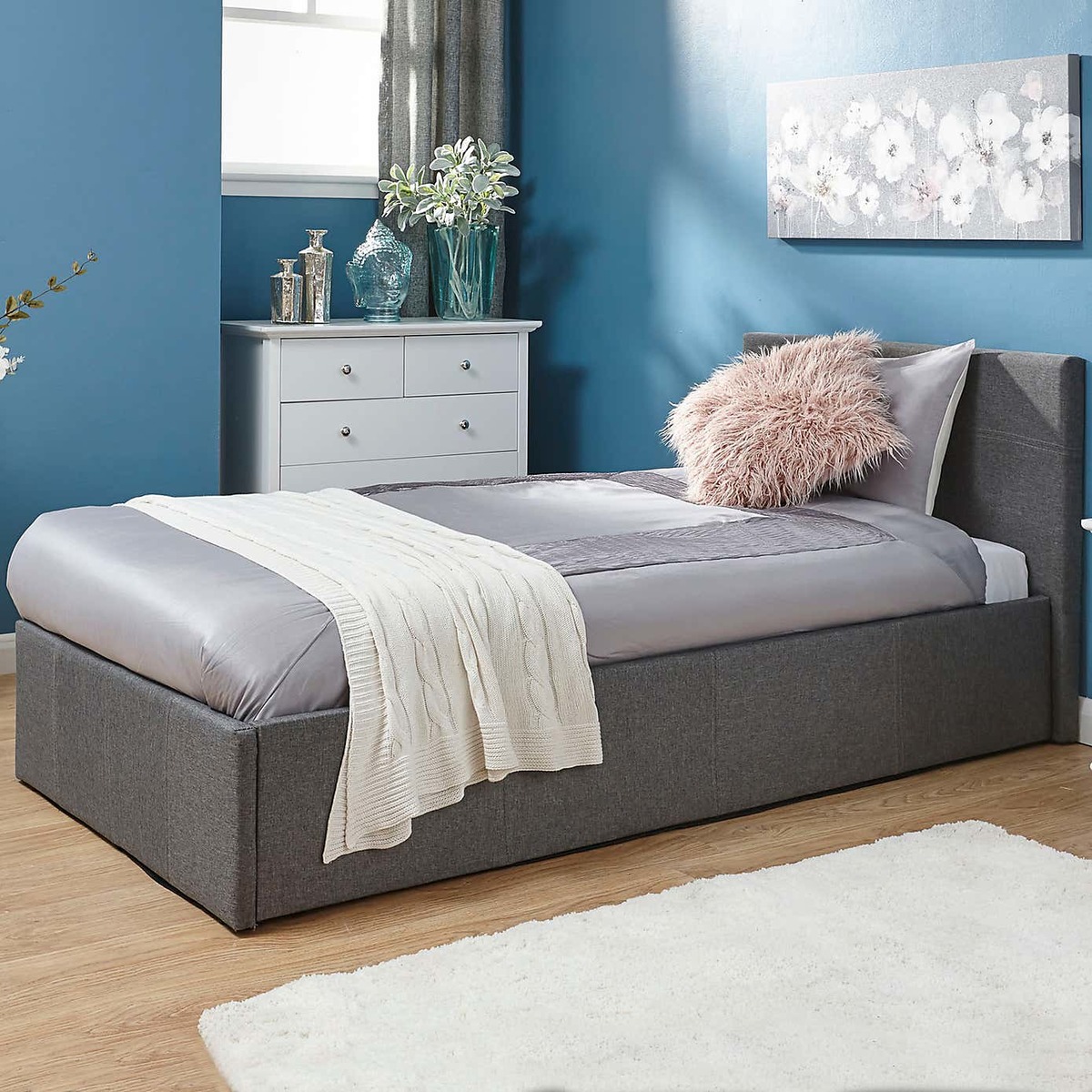 This grey side lift ottoman bed is a versatile piece that combines functionality with contemporary style. I love its clean lines and neutral tone, which makes it adaptable across various interior schemes-from minimalist bedrooms to more layered, textured spaces. It's particularly effective in modern or industrial interiors, where its sleek finish can complement metal accents or bold colour accents. Practical styling tips include pairing it with crisp bed linen and plush cushions for a cosy feel, or contrasting it with darker or patterned throws to add visual interest. The lift-up feature provides hidden storage, making it ideal for maximising space in smaller rooms or for those who like a clutter-free look. Overall, it’s a smart, stylish choice that adds both comfort and practicality.