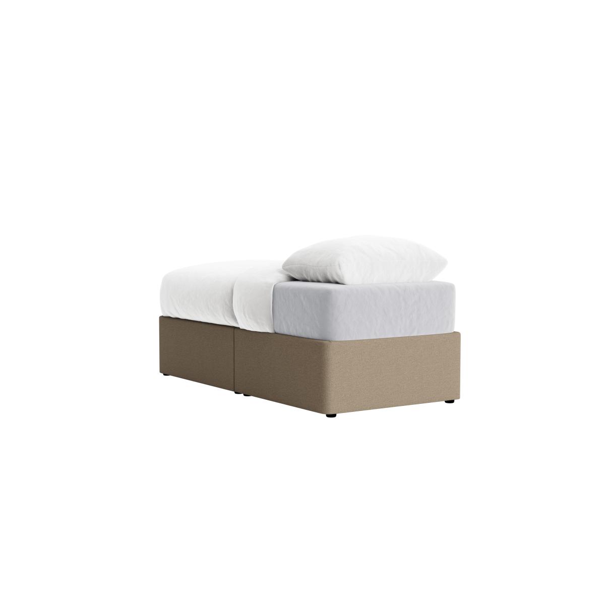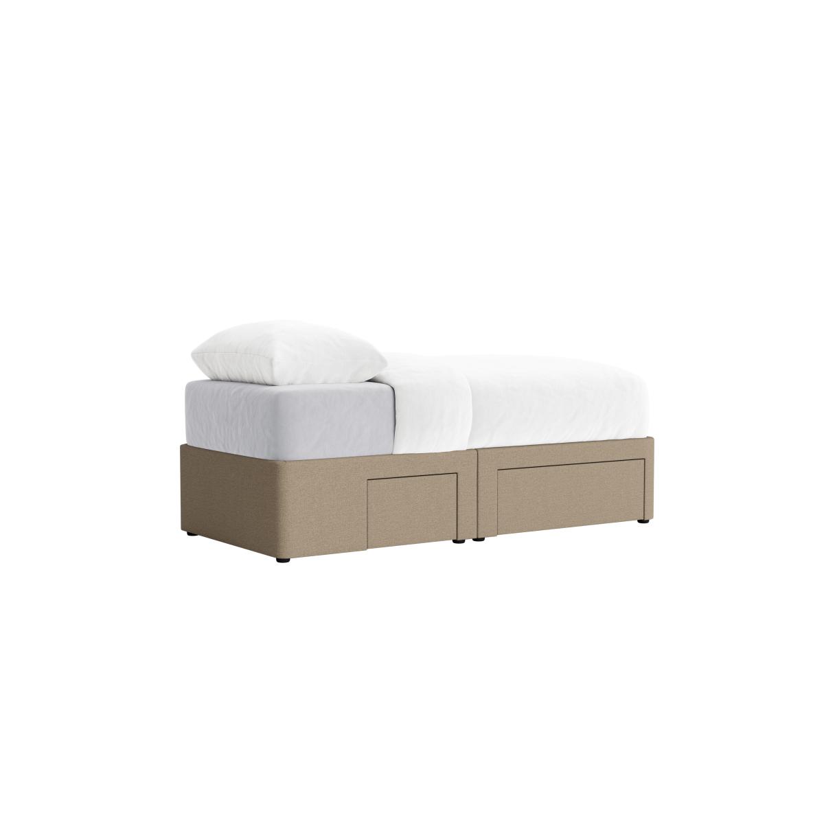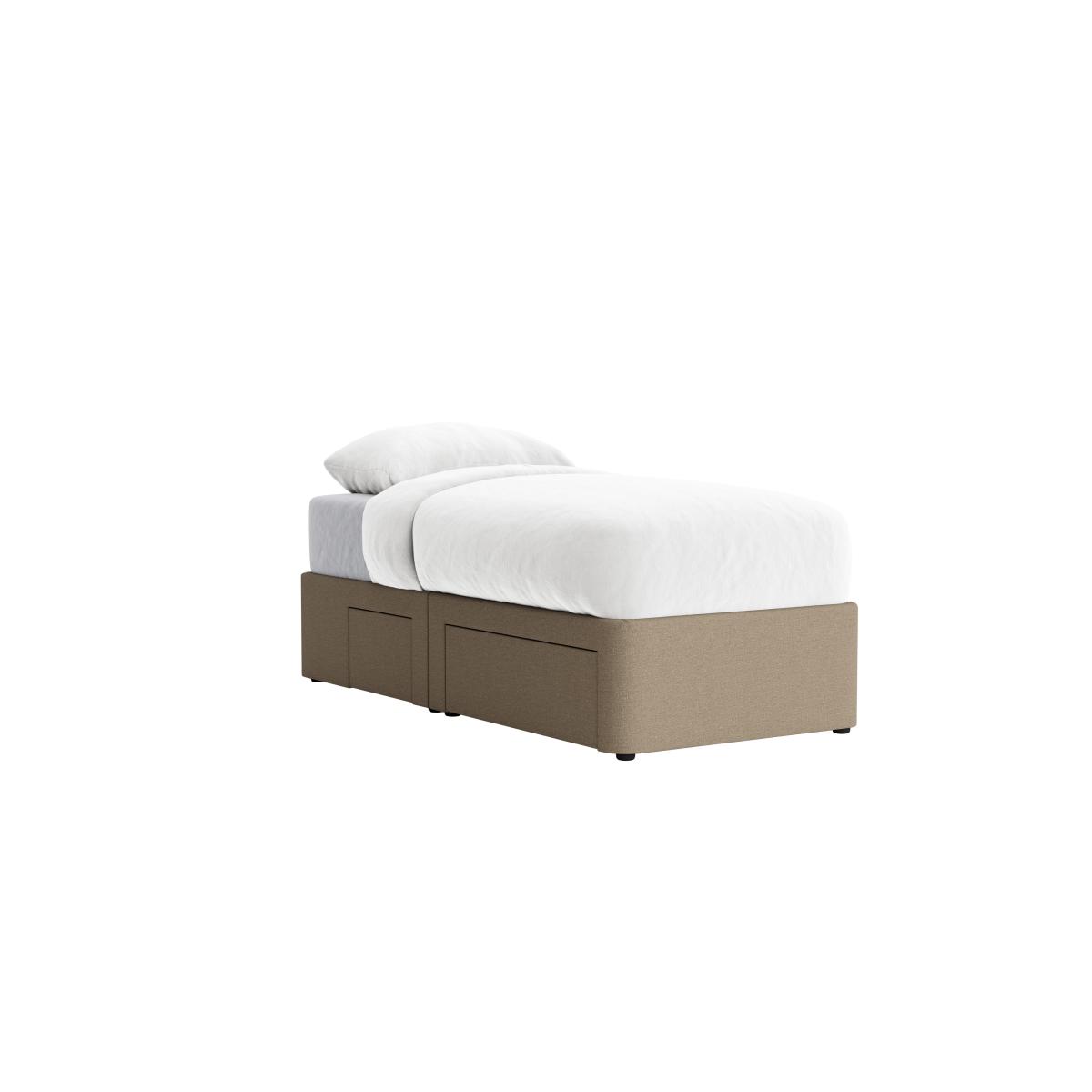 Side Stash 1.5 Drawer Bed Single with Left Hand Drawers in Portobello Mushroom Clever Slubby Linen
