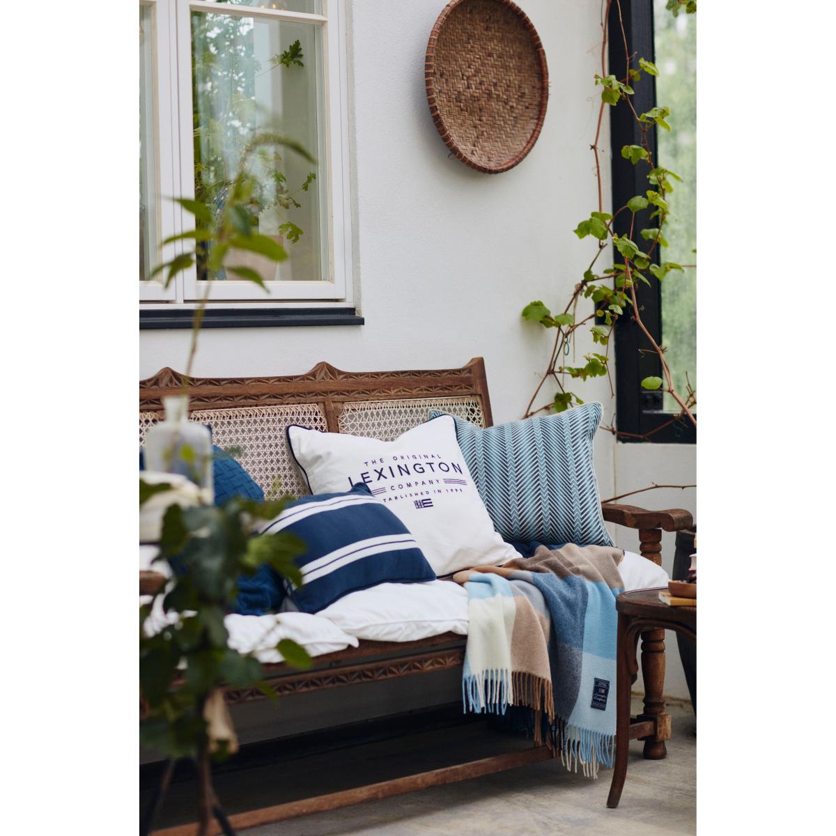 Side Striped cushion small 30x50 cm Dark blue-white