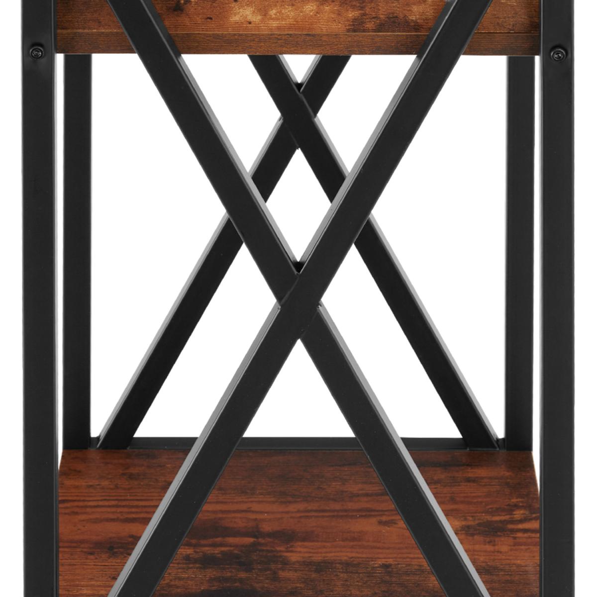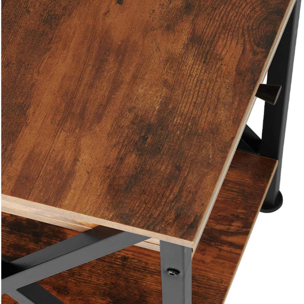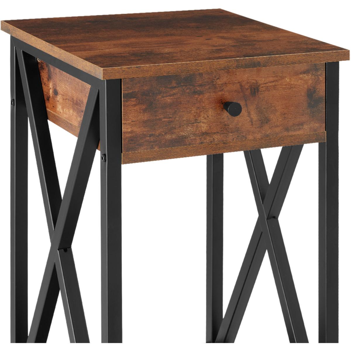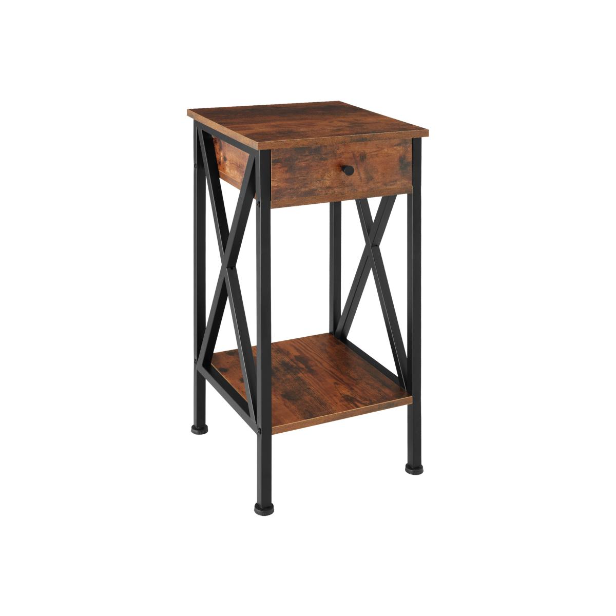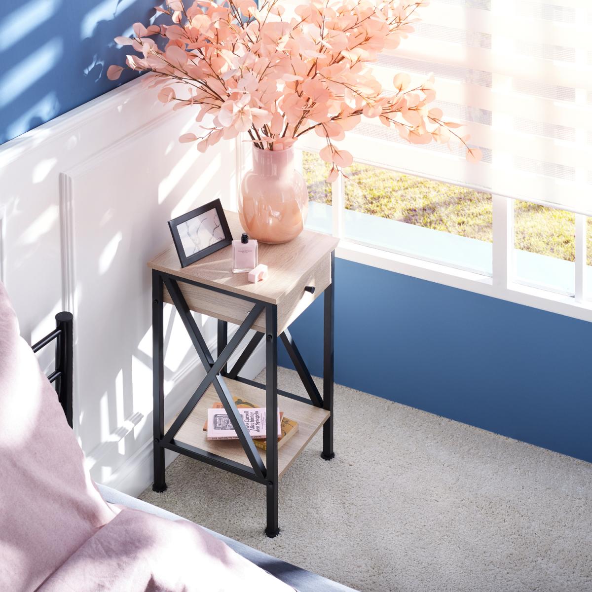 This trendy industrial style side table amp coffee table is perfect for any living room, bedroom or office in your home. With a spacious drawer and two shelves, it provides generous storage space within a compact footprint. Aesthetically the angular appearance and black powdered steel contrasts with the warm wood effect surface. The side diagonal braces, which underline the functional charm of the furniture, are particularly eye-catching. Enjoy the appealing and versatile side table Dayton from tectake.