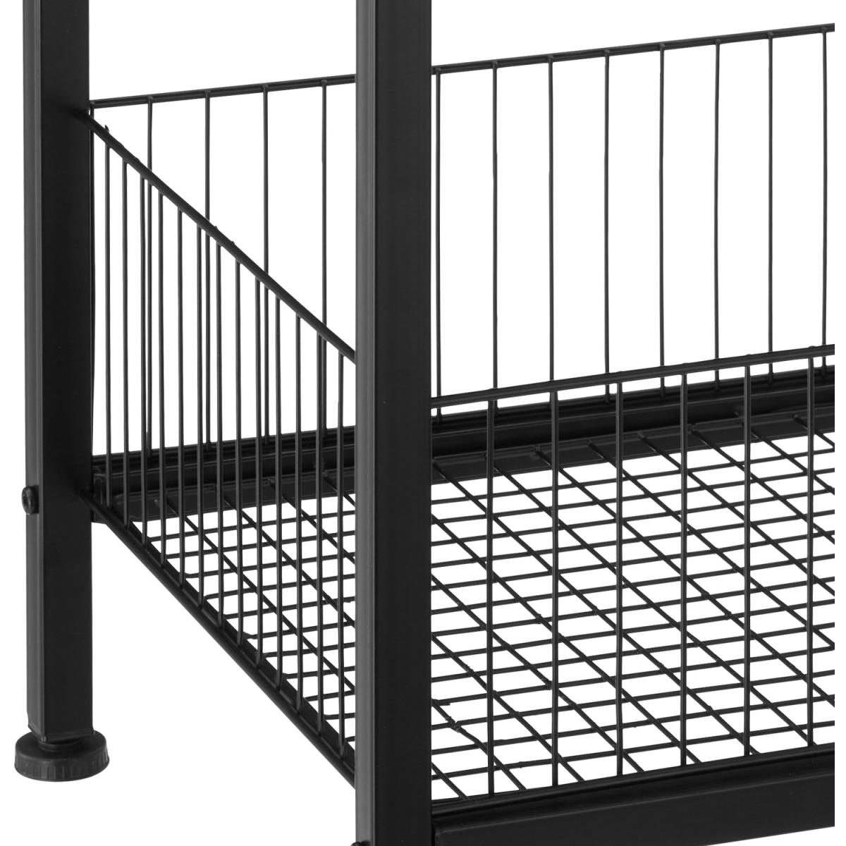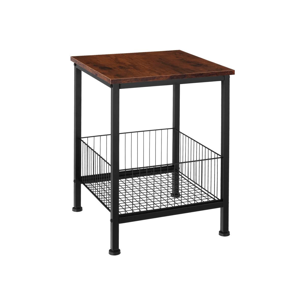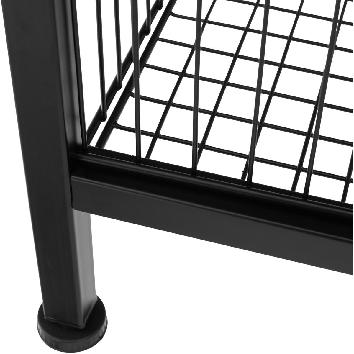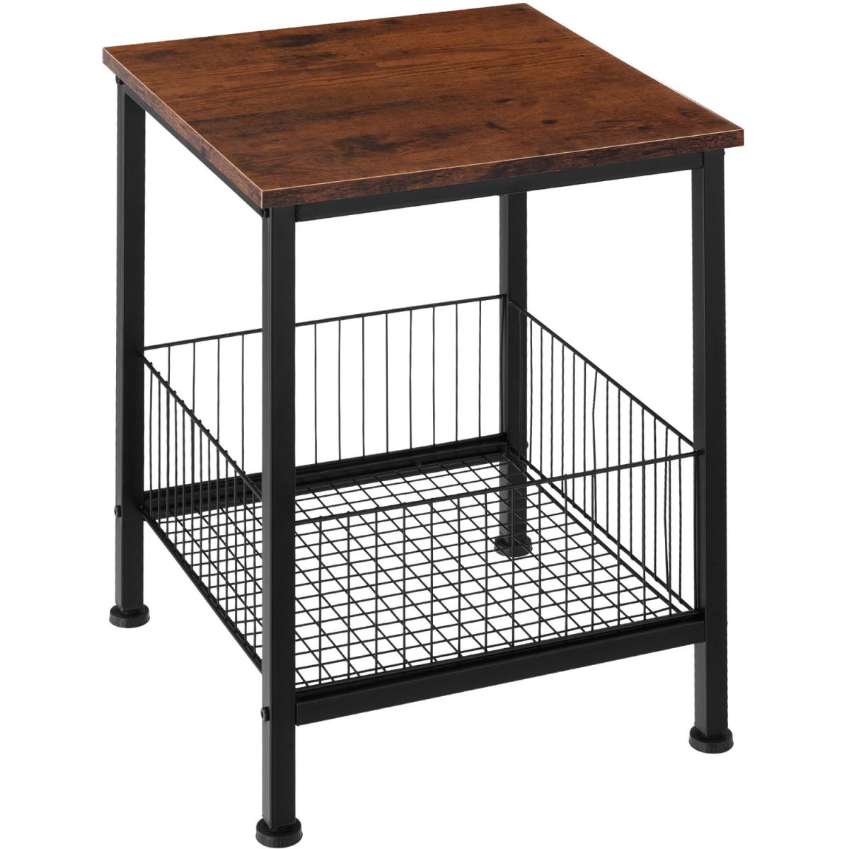 The Grimsby side table combines industrial-style charm with practical features. The durable oak wood look table-top with black powder-coated steel frame fits in any modern home, in the living room, bedroom or hallway. With a small footprint, open construction and integrated mesh basket to store your knitting, baby toys or other accessories, the furniture has a wide range of possible uses in your home. Four height-adjustable feet made of floor-friendly plastic guarantee the best balance a furnishing idea that is visually and functionally convincing across the board the versatile Grimsby side table from tectake.