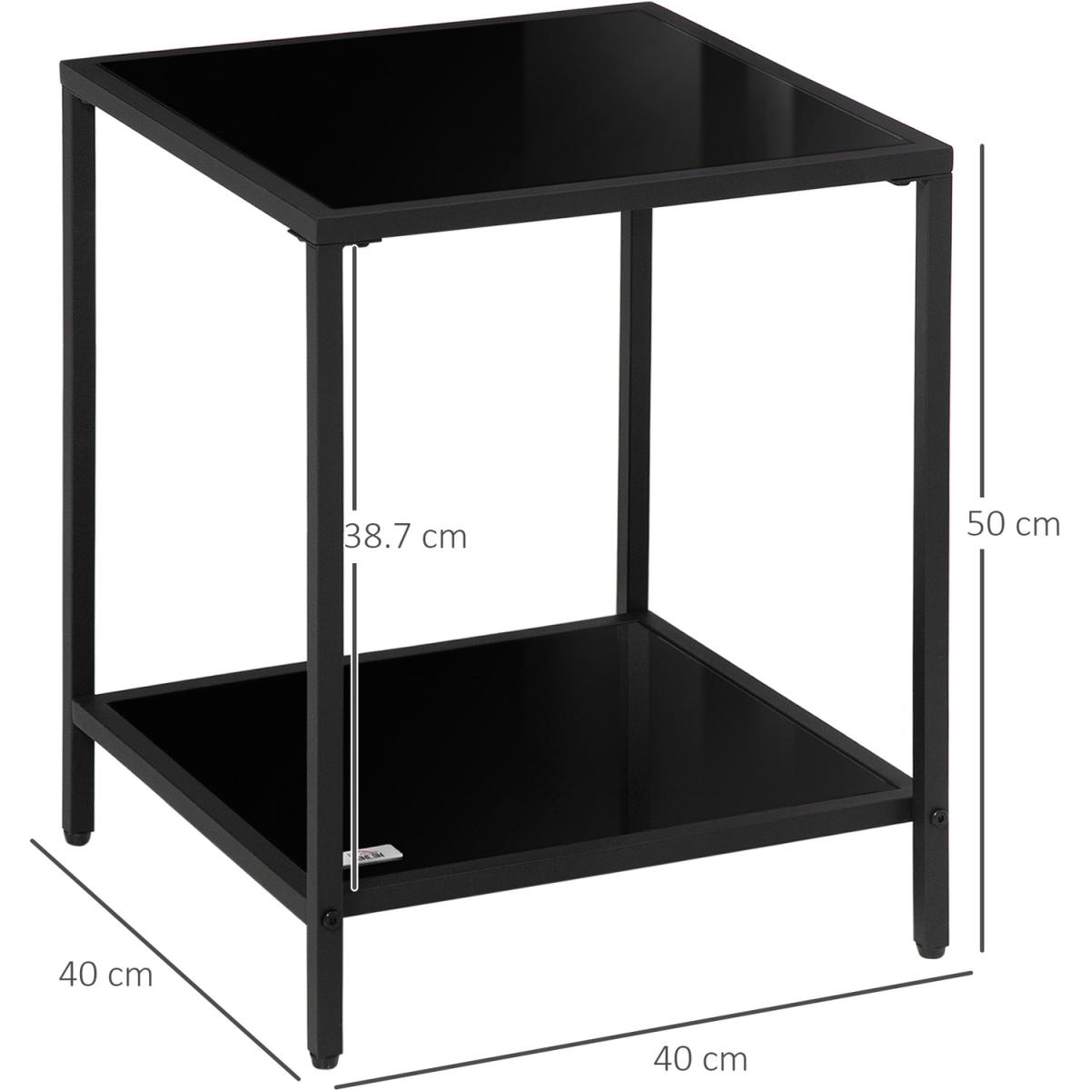 Side Table with Tempered Glass Top, End Table with 2-Tier Storage - Black