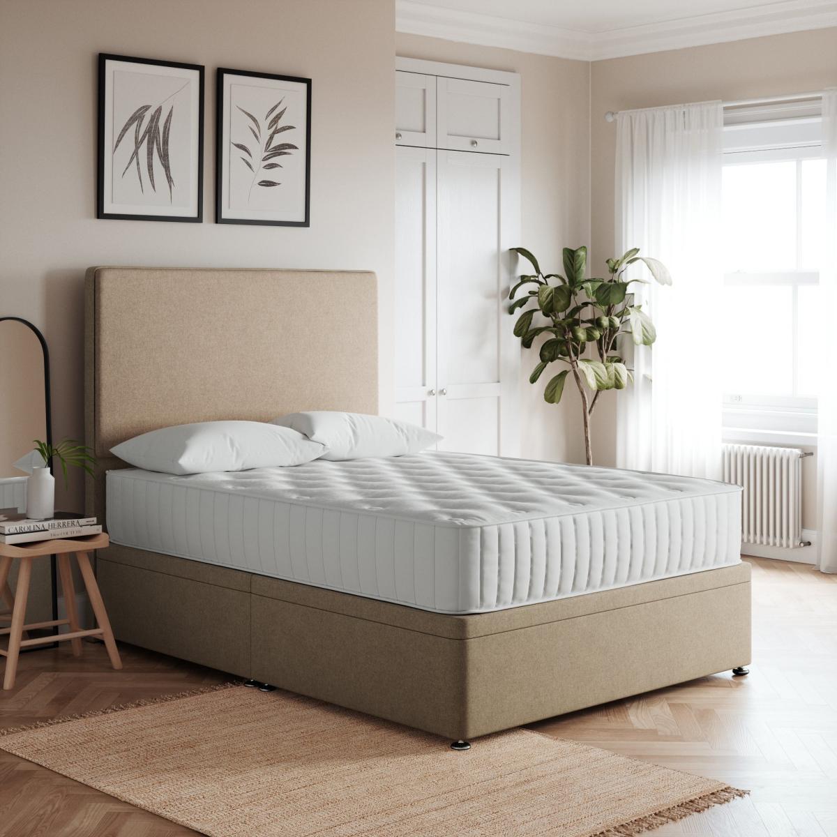 Constructed from high quality timber, this ottoman divan bed base provides excellent support for all types of mattresses. Upholstered in a range of high quality fabric colours, you can be sure you can find one to coordinate with your bedroom. This divan base is the ultimate style and storage solution for any bedroom. Please note: The headboard and mattress are not included.