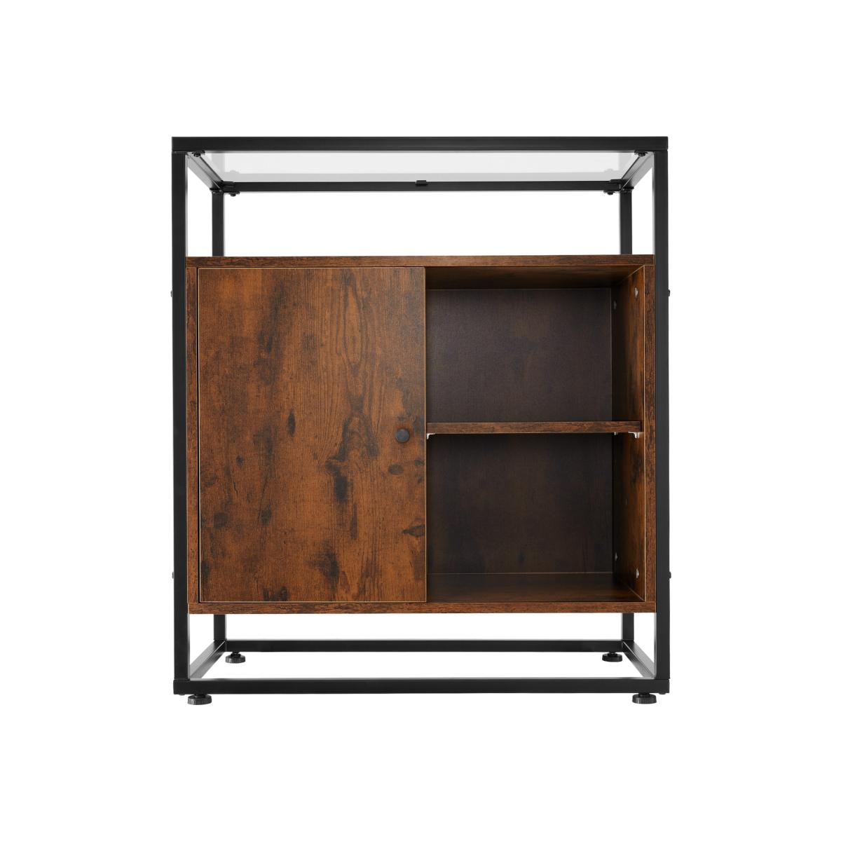 Sideboard Coventry, Glass Tabletop, Open Shelves, Storage Cabinet - Industrial Wood Dark, Rustic
