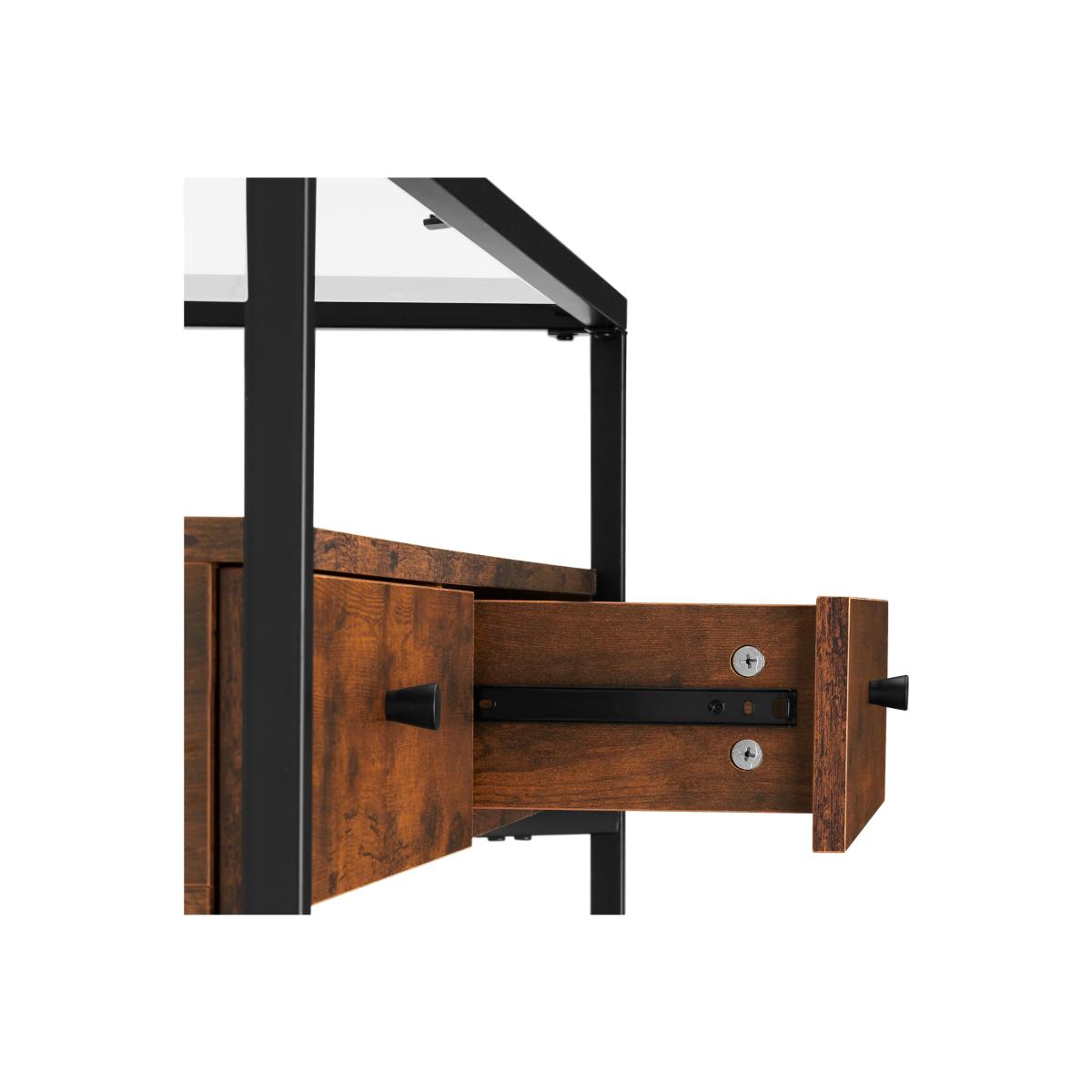 Bring your home decor dreams to life with the slim console table Maidenhead from tectake. This versatile piece of furniture not only boasts two shelves and two drawers, but also occupies minimal floor space for the usable storage space it provides. Plus, the durable powder-coated steel amp melamine protected surfaces ensure a long service life. The large glass top and slim middle section with a fine wood look oak finish creates an elegant accent, allowing you to display your accessories and provides a stylish addition to any hallway, dining, or living room. The natural oak cabinet and colour options are perfect to match with a variety of interior design choices.