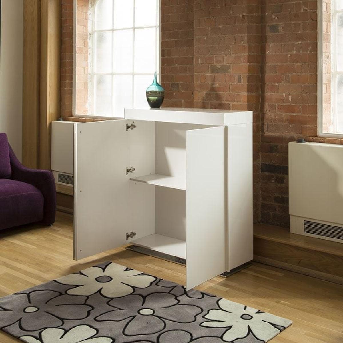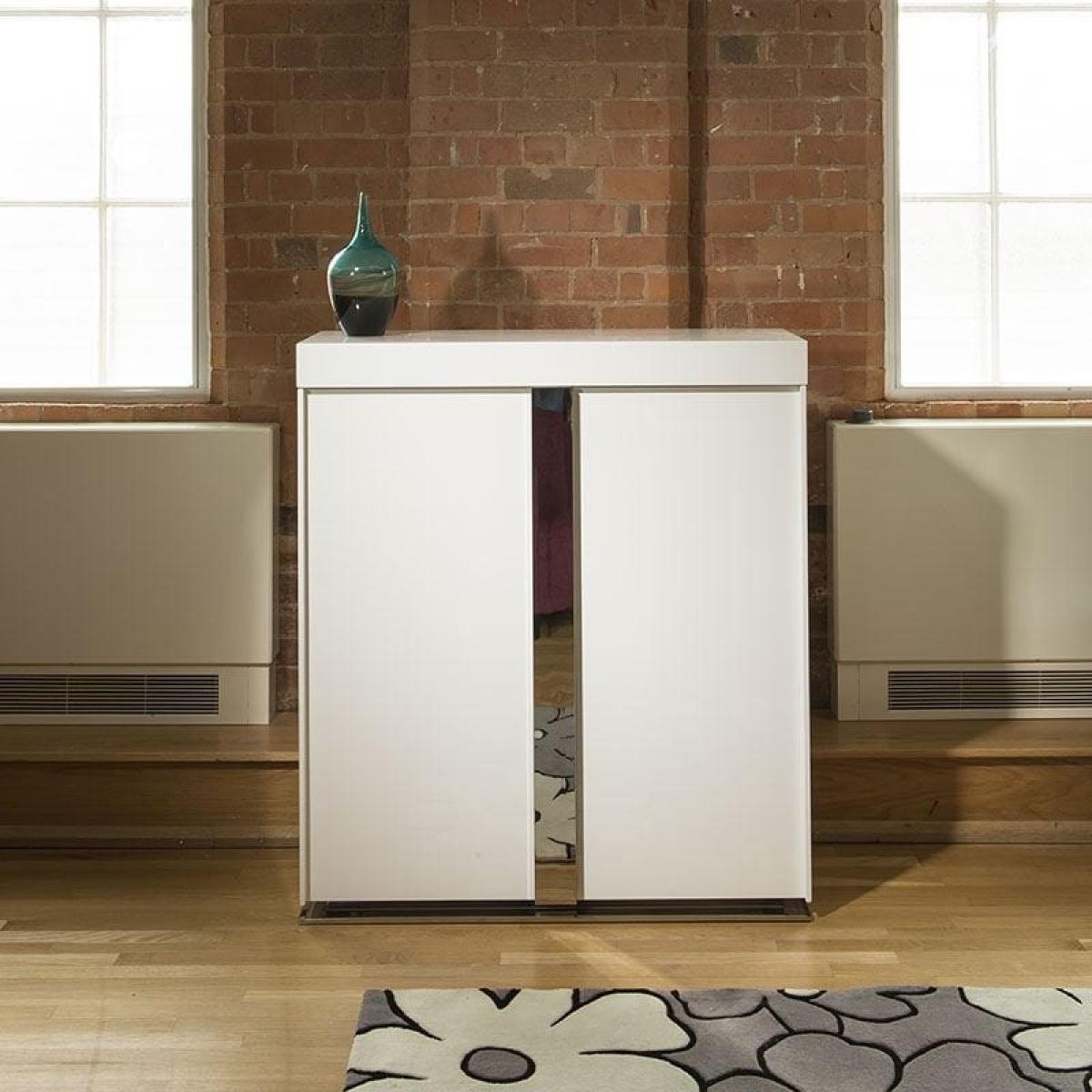 Avant Garde Design Studios 912. H Sideboard / Cabinet / Buffet in Brilliant White High Gloss Finish. Ideal for a Drinks Cabinet Or Storage Unit in Any Dining or Living Room. Features include soft closing doors and stainless steel base and door handle. Wonderful build quality. W110cm D39cm H124cm Modern Design Premium Quality Furniture