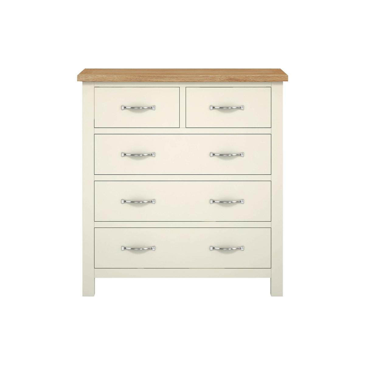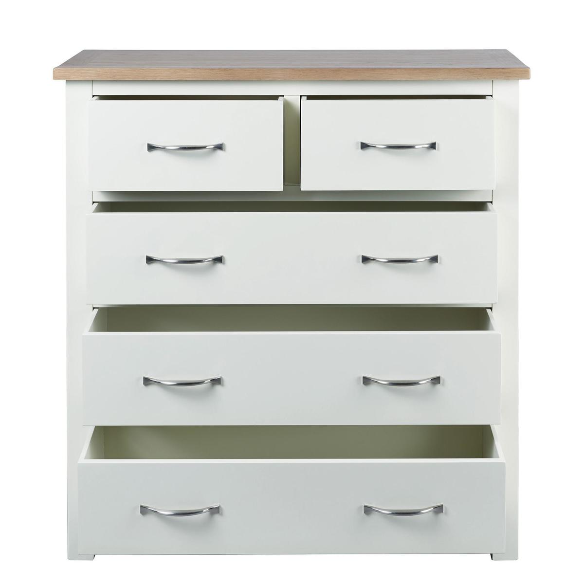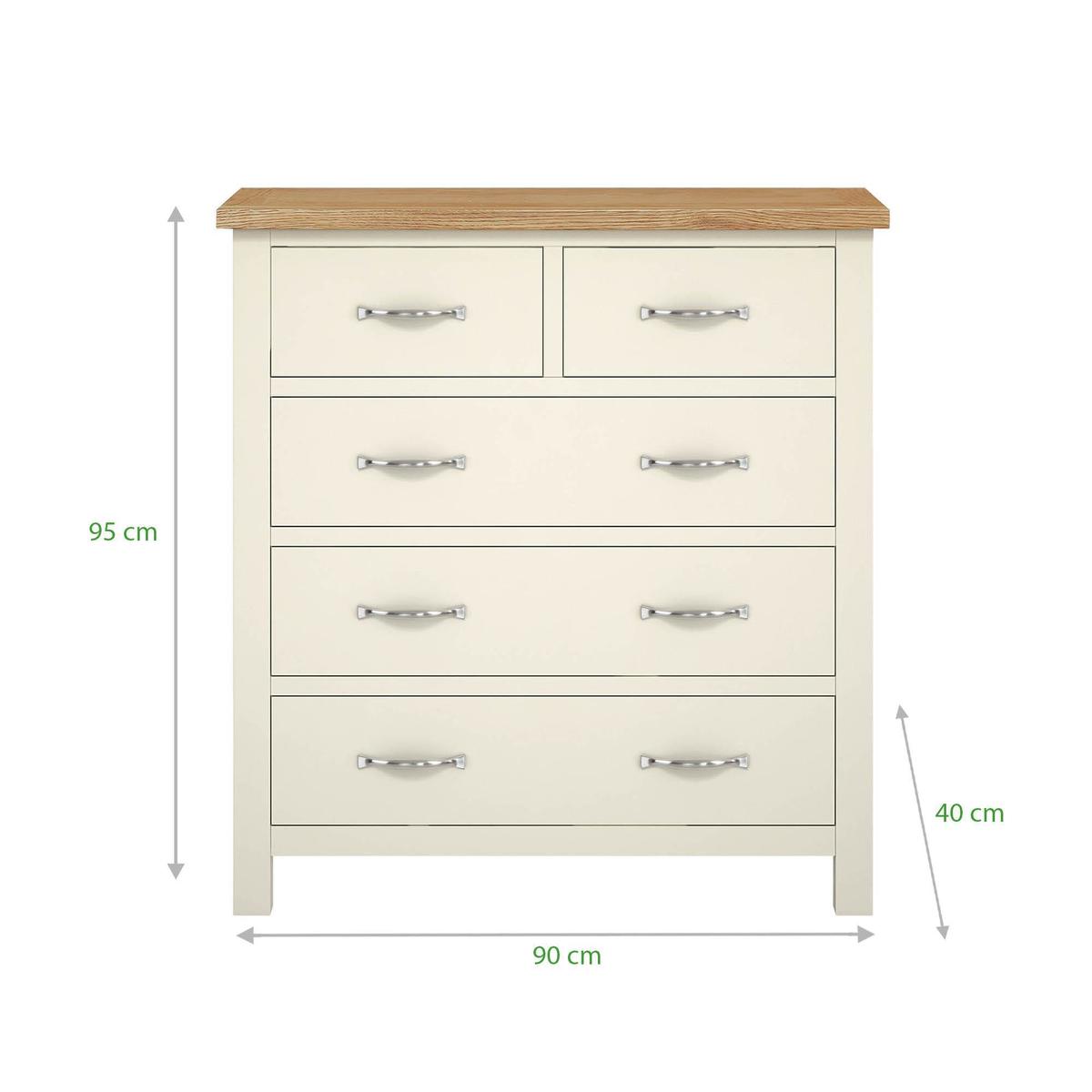 Dunelm Exclusive - Designed and Developed by Dunelm Designed with solid oak and oak veneered tops with a warm lacquered finish, the Sidmouth range is inspired by clean, simplistic styling. Featuring a smooth cream, painted finish, this fully assembled chest of drawers will make a classic addition to any room. Fashioned with two smaller drawers over three large drawers, this chest of drawers is complete with simplistic feet. The drawers are finished with wooden drawer runners and stylish, curved cast metal handles, with a chrome colourway. This Range is also available in [Oak](https://www.dunelm.com/category/home-and-furniture/furniture/shop-by-collection/sidmouth-furniture-collection?f_attributes.objDunelmsku.colourGroup=Brown) and [Cotton.](https://www.dunelm.com/category/home-and-furniture/furniture/shop-by-collection/sidmouth-furniture-collection?f_attributes.objDunelmsku.colourGroup=Natural&f_attributes.objDunelmsku.colourGroup=Grey)