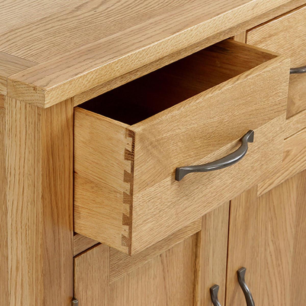 Dunelm Exclusive - Designed and Developed by Dunelm Designed with solid oak and oak veneer for a durability, the Sidmouth range is inspired by clean, simplistic styling. Featuring a striking warm, waxed finish, this fully assembled sideboard will make a classic addition to any room. Featuring two doors with curved cast metal handles, this sideboard offers an abundance of space with one internal fixed shelf. Designed with two spacious drawers, this sideboard is finished with wooden drawer runners and stylish pewter handles. This Range is also available in [Cream and Cotton](https://www.dunelm.com/category/home-and-furniture/furniture/shop-by-collection/sidmouth-furniture-collection?f_attributes.objDunelmsku.colourGroup=Natural&f_attributes.objDunelmsku.colourGroup=Grey).