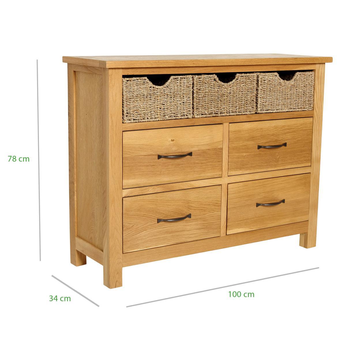 Dunelm Exclusive - Designed and Developed by Dunelm. Designed with solid oak and oak veneer for a durability, the Sidmouth range is inspired by clean, simplistic styling. Featuring a striking warm, waxed finish, this fully assembled sideboard will make a classic addition to any room. Offering an abundance of storage space, this fully assembled sideboard is crafted with three handwoven seagrass baskets. Designed with four large, spacious drawers, this stylish sideboard is finished with cast metal, curved handles, decorated with a pewter finish. Search 'Sidmouth' to shop the full range.