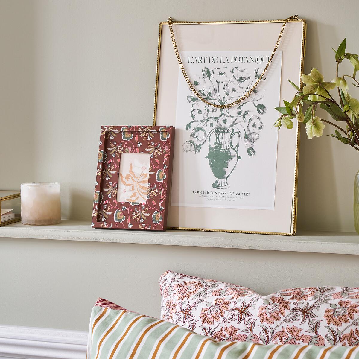 I really like the Sidonie free-standing frame for adding a pop of colour and personality to any space. Its vibrant floral pattern works particularly well in eclectic, boho, or vintage-inspired interiors, but it can also bring a playful touch to more minimalist settings when styled thoughtfully. Practical tips include pairing it with other textured or patterned accessories to create visual interest or placing it on a bookshelf, sideboard, or mantel for a casual yet curated look. Because of its size, it’s perfect for highlighting a cherished photo or artwork and can be easily mixed and matched with other frames for a personalised display.