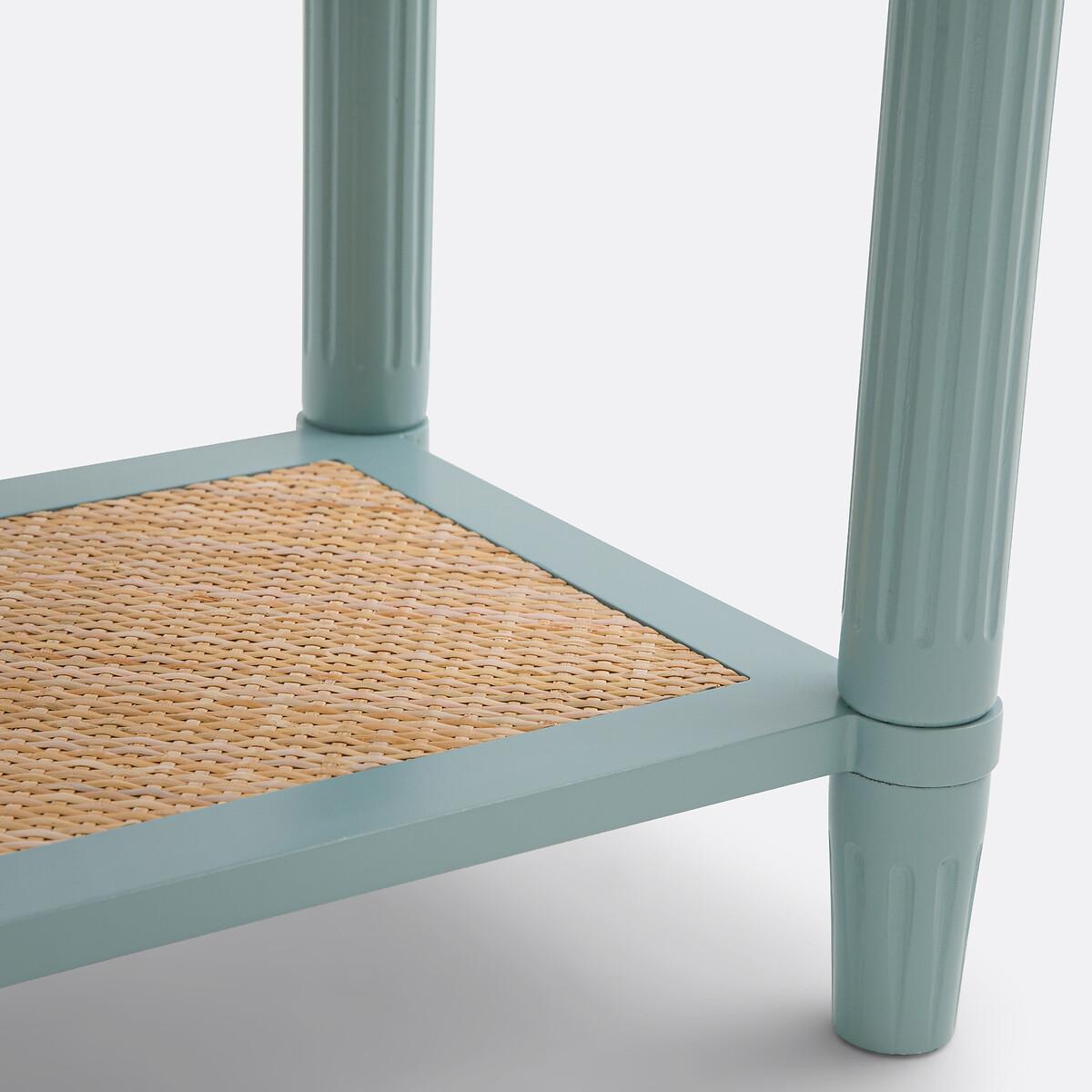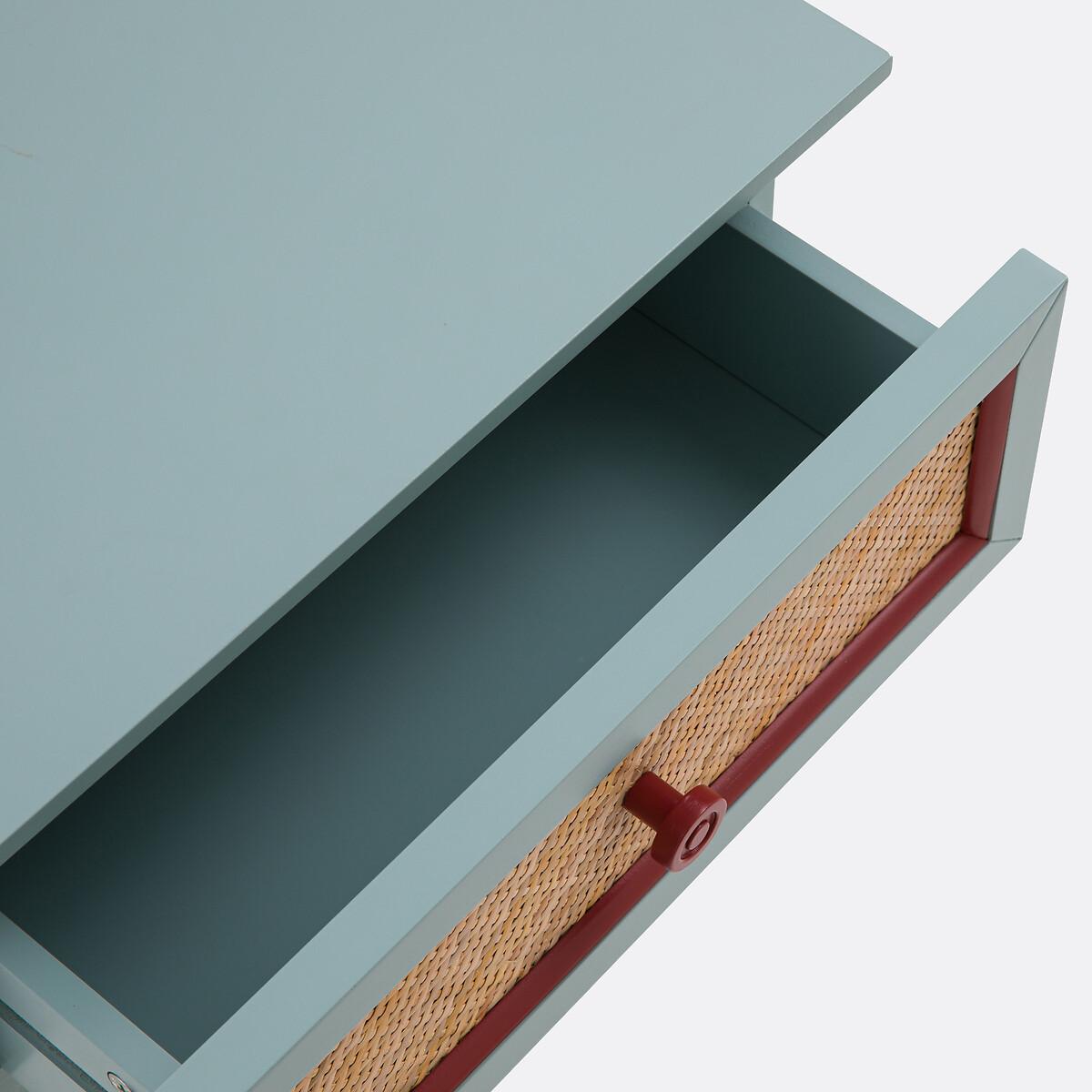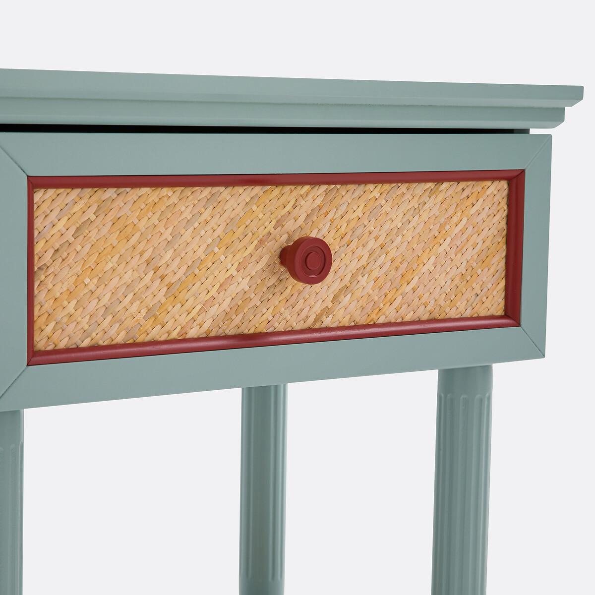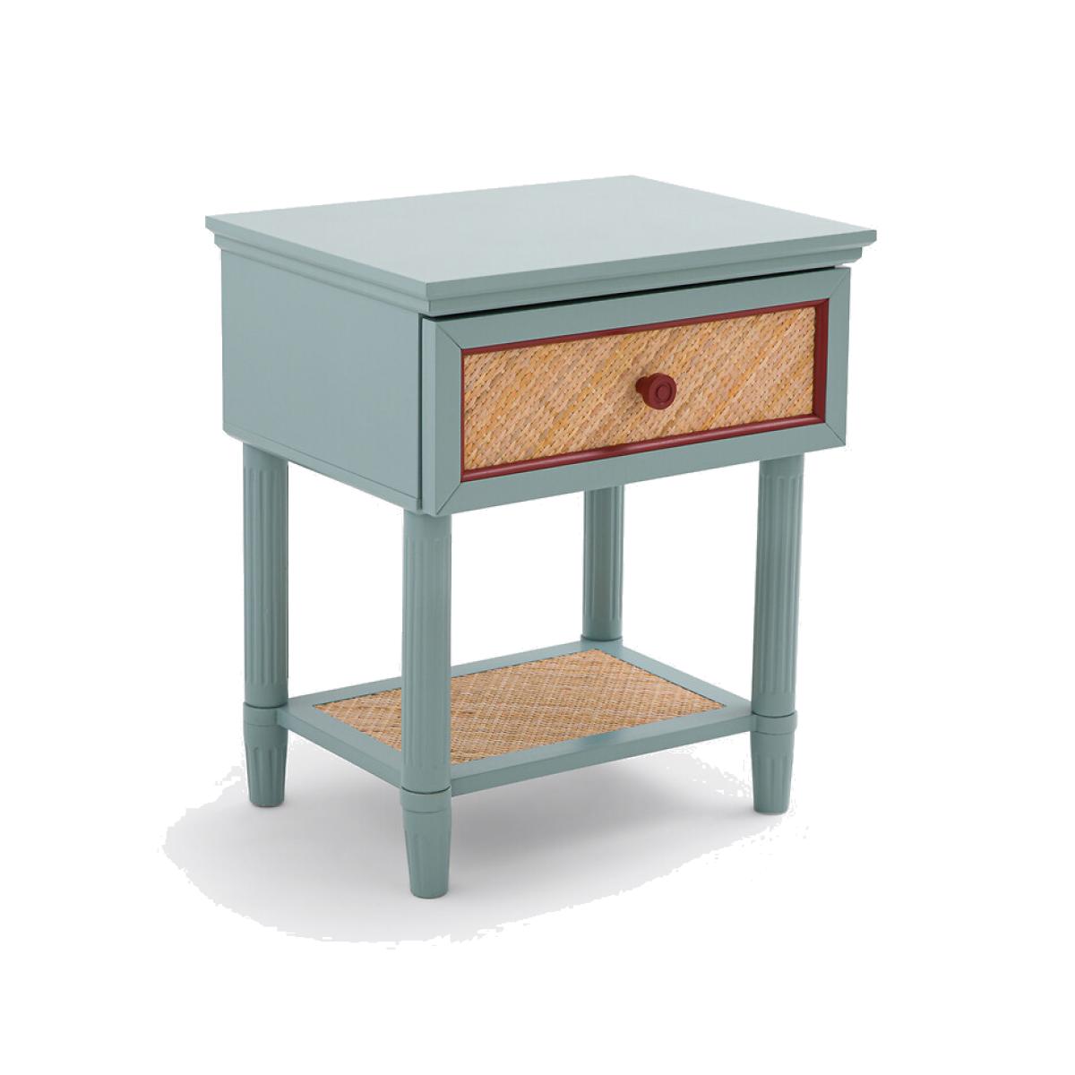 With a 'country house, bric-a-brac' spirit. the Sidore bedside table has the charm of revisited antique furniture: The wood is painted in a soft pastel colour, and the front of the rattan drawer is highlighted with a contrasting frame. Ideal for creating a shabby chic atmosphere in the bedroom. Product Details • 1 drawer and 1 shelf • Lacquered MDF structure • Lacquered solid pine legs • FSC® certified wood • Acrylic finish • Drawer front and shelf covered in woven rattanDimensions. Overall • Width: 45cm • Height: 52.5cm • Depth: 35cm • Weight: 8.3kg. Usable space • Drawer: L35 x H8.5 x D27.2cm • Shelf :L30.5 x H23.5 x D20.5cm • Height of legs: 8.2cmDelivery:. This product required assembly. Available for home delivery. • WOOD FROM SUSTAINABLY MANAGED FORESTS. FSC® certified wood comes from forests that are environmentally, socially and economically well managed. Dimensions and weight of parcel1 parcel • L67 x H14 x D43cm. 9.8kg