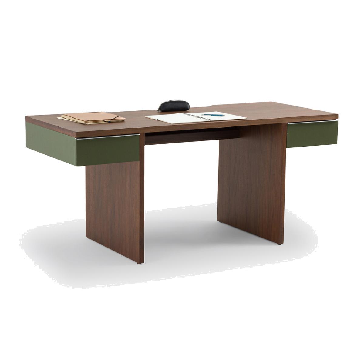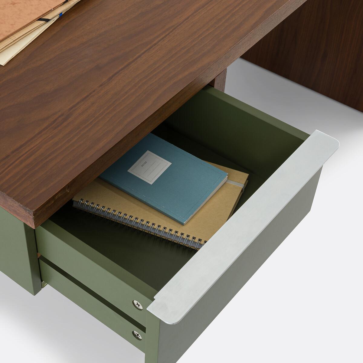 A refined dark wood, an XL format and a simple, infinitely graphic and contemporary line. The Siem desk is a timeless and highly functional piece. Created by La Redoute Interiors. Product Details • Large work surface • Walnut veneered MDF structure • 2 lacquered MDF drawers • Nitrocellulose varnish finish • FSC® certified wood • Aluminium handles • Cable pass holeDimensions. Overall • Width: 170cm • Height: 75cm • Depth: 70cm • Weight: 69kg. Usable space • Drawers : L32 x H10.5 x D46.5cm • Width between legs: 89.3cm • WOOD FROM SUSTAINABLY MANAGED FORESTS. FSC® certified wood comes from forests that are environmentally, socially and economically well managed. Delivery:This product requires assembly. Available for home delivery. • WOOD FROM SUSTAINABLY MANAGED FORESTS. FSC® certified wood comes from forests that are environmentally, socially and economically well managed. Large size. Dimensions and weight of parcel1 parcel • L180 x H17 x D80cm. 74kg.