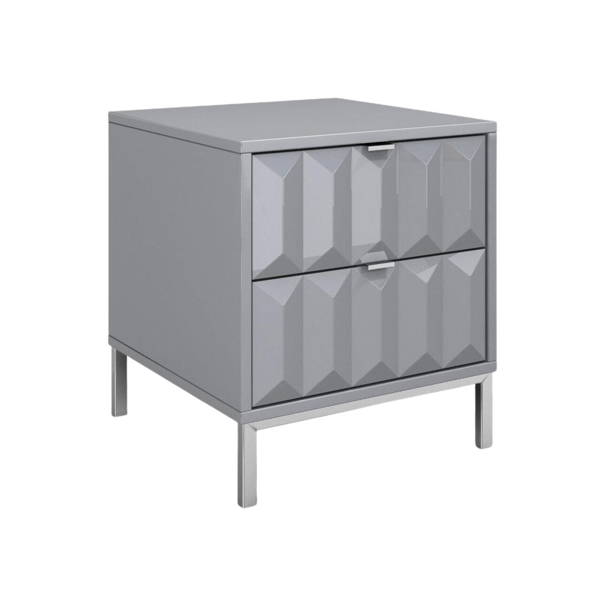 Siena 2 Drawer High Gloss Geometric Bedside Table - Grey