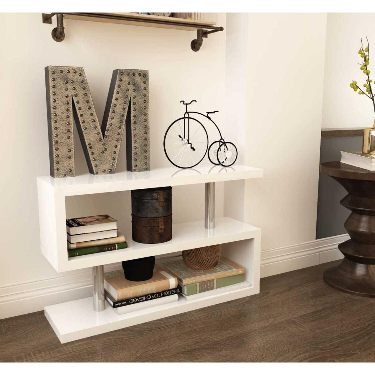 Stylishly combining slick high gloss with crisp chrome metal supports, the Siena shelf would make a great addition to any living, office or hall space. It has a modern 'S' shaped design and smooth high gloss finish, making it perfect for the modern home and allowing easy wipe-clean surfaces. Featuring 2 spacious shelves plenty of room is allowed for storage- ideal for books and home accessories! The modern design really will transform your room and at such a brilliant price it cannot be beaten! To complete the look why not also purchase the Siena rotating desk Featuring the same design these products go perfectly together!