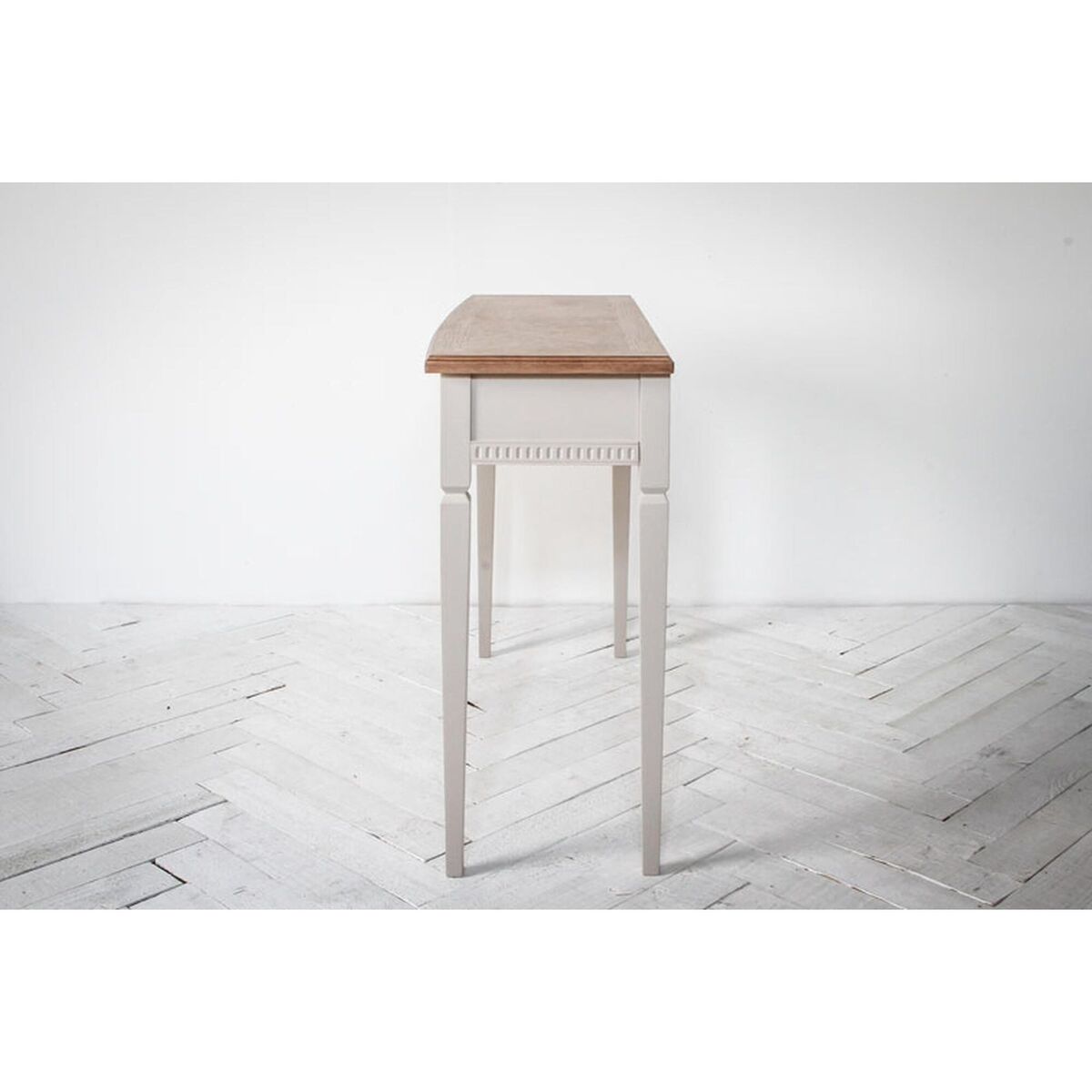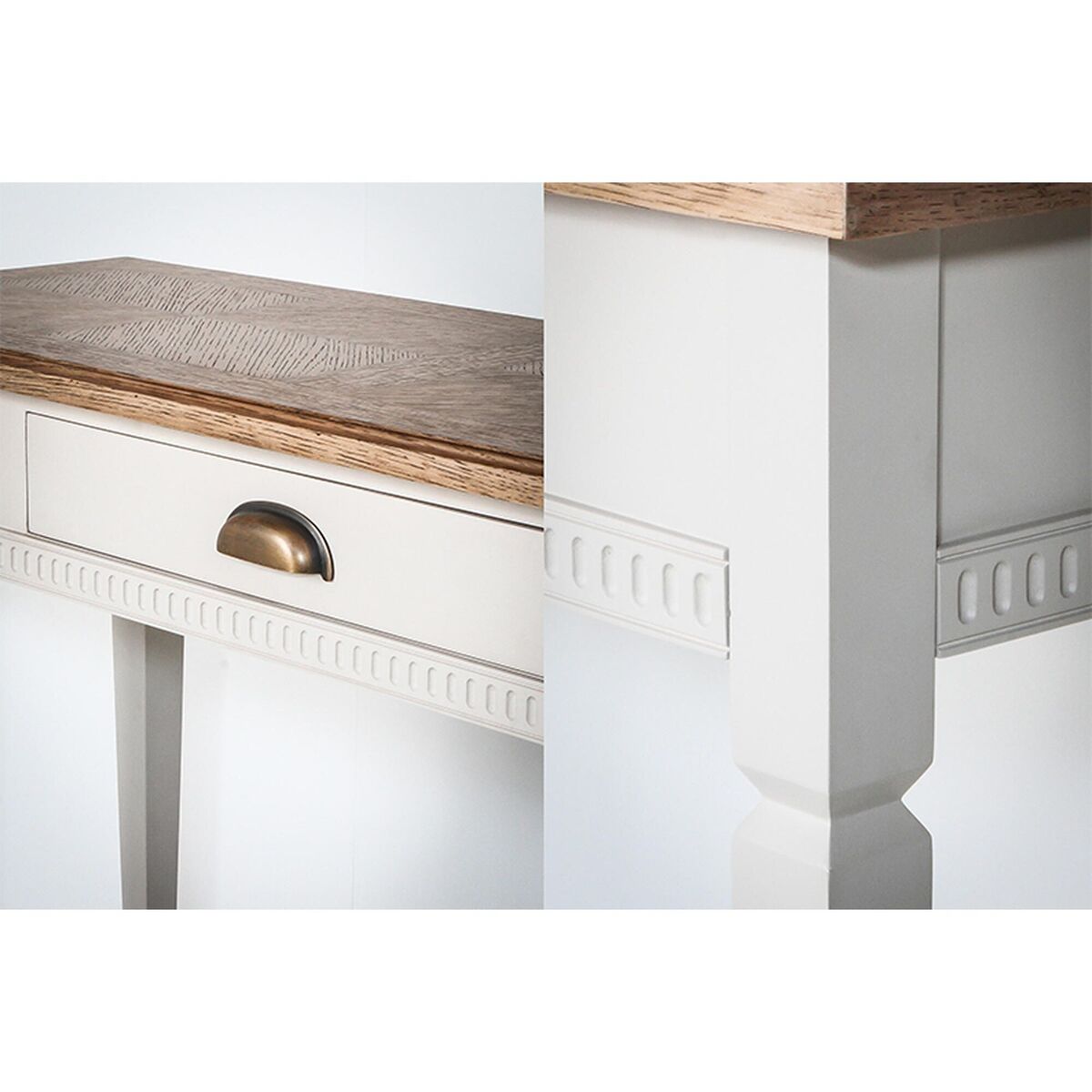 Create an unforgettable first impression with the Sienna, a console table of beautiful subtlety. Its slim and airy design will fit into the narrowest of the hallways, which makes it perfect for styling up the main entrance of homes and living spaces. Combining a painted body in Ice Grey and a parquet-textured top with a natural finish, this design is a showcase of the natural charm of the woods it's made from oak and acacia. Pair the Sienna with metallic touches and let it speak to your guests about the stylish home that lies ahead.