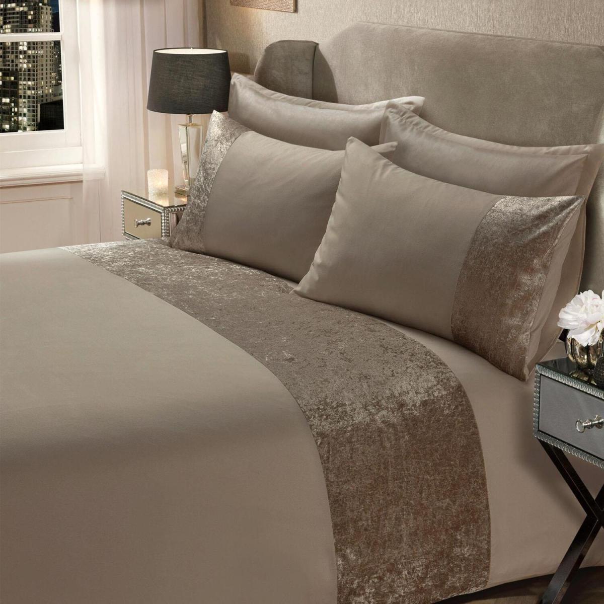This luxurious crushed velvet panel duvet cover set from the Sienna Home Collection would look ideal in any bedroom due to its metallic crushed velvet band design and striking colours. This is a perfect way to give your room a fresh, modern look, with its subtle colours. This duvet set is made from soft touch polyester, making it soft, comfortable and durable. This easy-care bed linen will give your bedroom an instant sophisticated look and once washed it has great resistance to wrinkles, fading and shrinkage. It includes a duvet cover and matching pillow case(s), all you need for a good nights sleep.