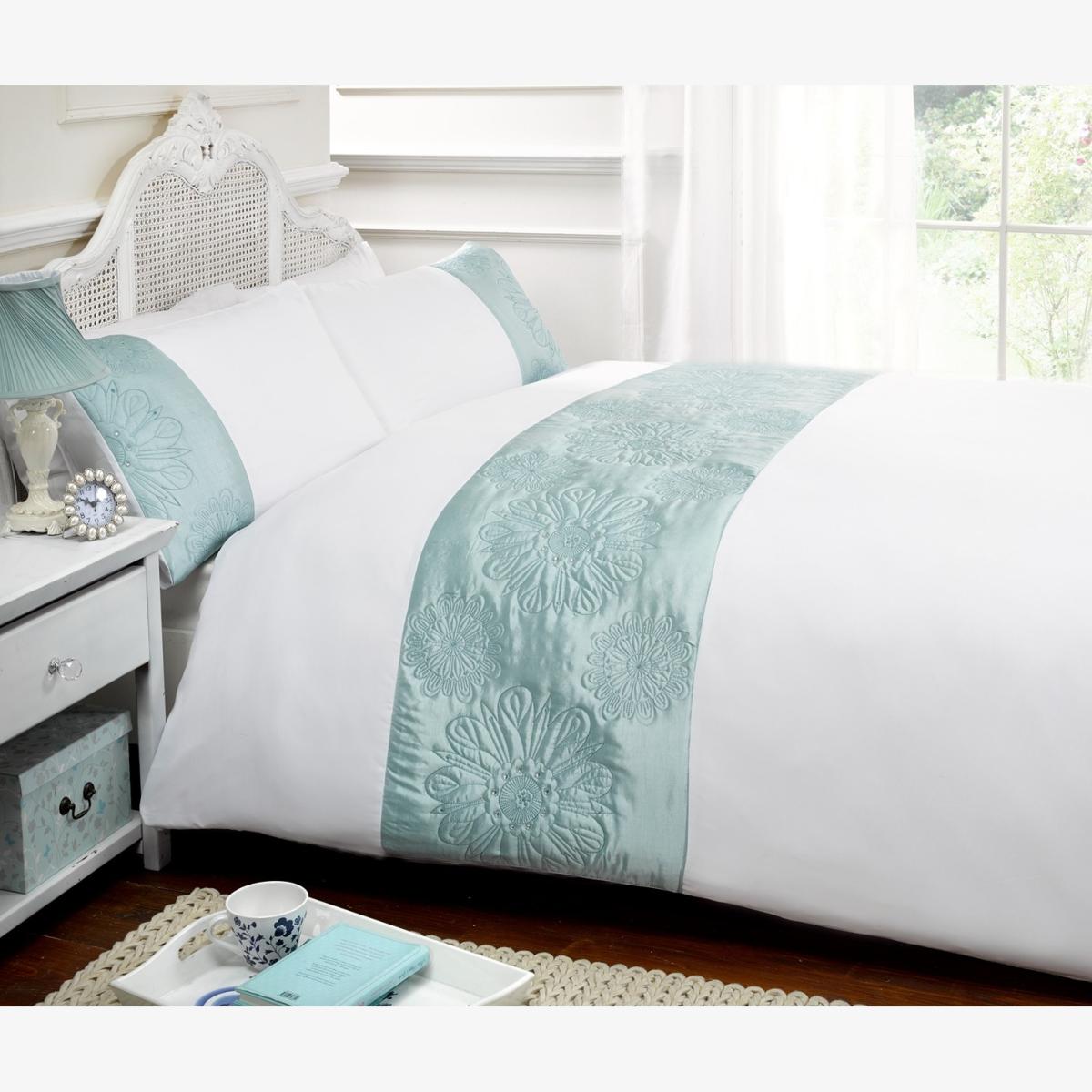 Sienna Diamante Polyester Duvet Set With Pillowcase - Duck Egg / Superking