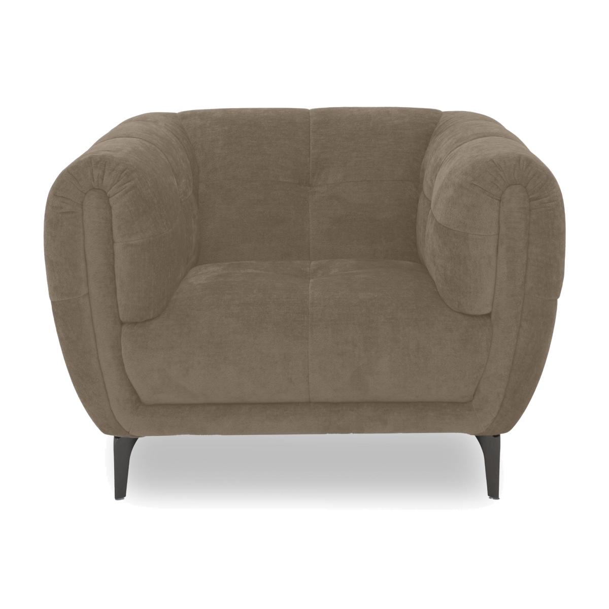 Striking style or superb comfort? With our Sienna range, you don’t have to choose. This collection of sofas, armchairs and footstools is modern and sophisticated. Sofas and chairs have eye-catching silhouettes with higher backs and curved arms that offer great support as well as an on-trend look. And talking of support, you’ll love the sprung seating platforms that mean every seat on a Sienna sofa is as comfy as the next. Plus, pocket-sprung seat cushion interiors promise exceptional comfort. Handcrafted exclusively for Furniture Village, the great-value Sienna range comes in a huge choice of 100% leather and fabric upholstery options. Our Sienna armchair is a real statement piece at a fantastic price. With its beautiful, stylish curved arms, metal legs and buttoned finish, the details are as impressive as its pocket-sprung comfort. Why you’ll love it A sophisticated, modern look with a striking silhouette and rounded arms. Eye-catching style at an exceptional price. With deeply cushioned curves that look and feel amazing. Sprung seats mean better weight distribution. Pocket-sprung seat interior and foam cushioning make this chair simply irresistible. All-over buttoning creates a contemporary panelled look. Metal legs have a stylish titanium finish. Choose from a vast array of upholstery fabrics. Also available in 100% leather. Handcrafted. A Furniture Village exclusive. This chair is part of our Sienna range. What you need to know Medium comfort level. Seat suspension: sinuous springs. Seat cushioning: pocket spring, foam and Dacron. Seat cushioning is fixed. Back suspension: webbing. Back cushioning: foam and Dacron. Back cushioning is fixed. Arm cushioning: foam and Dacron. Back and feet are removable for ease of access. Fixed seat and back cushions require smoothing and straightening regularly. To smooth and straighten fixed cushions, punch the back cushion’s top two corners and the seat cushion’s outer two corners, and pinch outwards. Some fabrics can show wear on areas of more use or in direct sunlight. Clean regularly using a soft brush or vacuum with the curtain attachment. Deal with any spills promptly. Professional cleaning advised for oil- and grease-based stains. Please read our upholstery care guide for more advice. Item code: SIENCHR-FAB-041