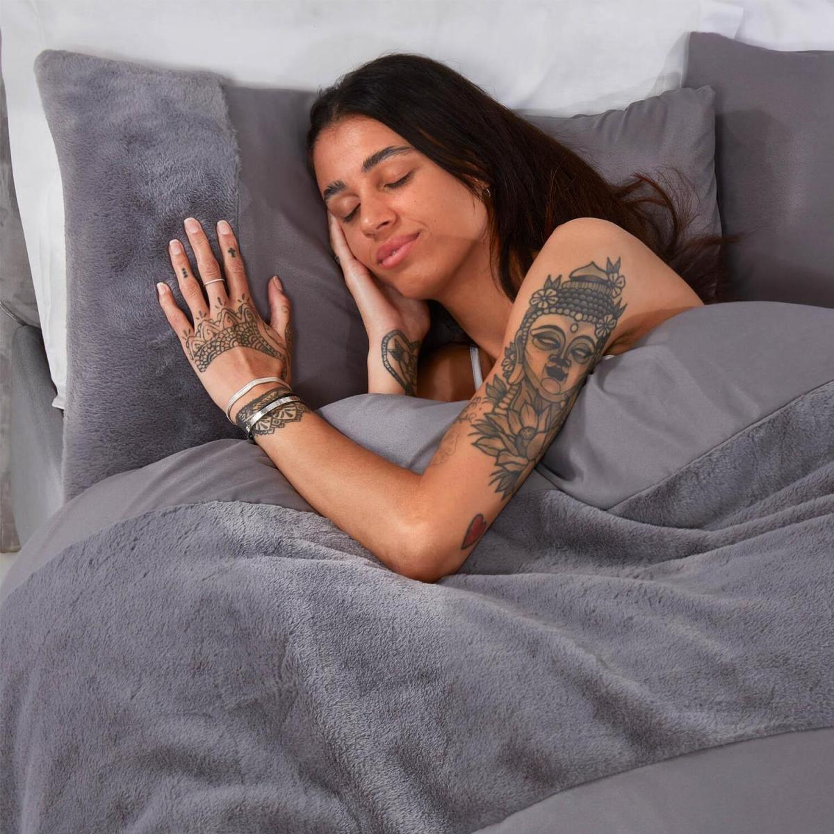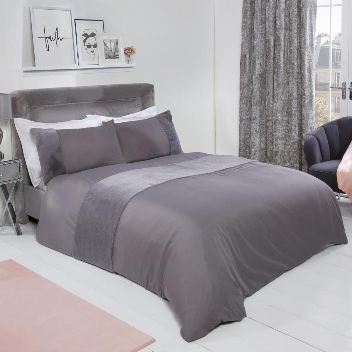 Our Sienna faux fur fleece panel duvet will be a great addition to your home, featuring a soft faux rabbit fur fleece band towards the top of the duvet, and a panel on the edge of the pillow for added comfort, this item is a perfect way to give your room a vibrant, warm fresh look. This duvet set is made with super soft touch faux rabbit fur polyester and durable polyester, making it comfortable and stylish. This easy-care bed linen will give your bedroom that modern feel and once washed it has great resistance to wrinkles, fading and shrinkage. This soft faux fur panel set includes a duvet cover and matching pillow case(s), all you need for a good nights sleep.