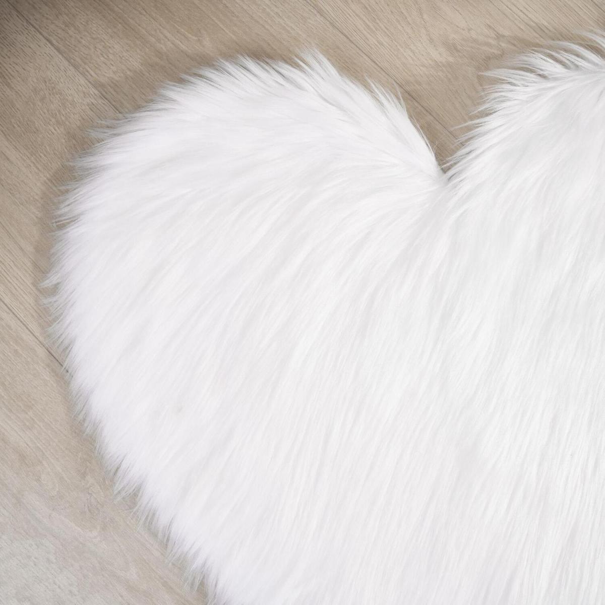 Sienna Faux Sheepskin Fluffy Plush Heart Shape Rug - White
