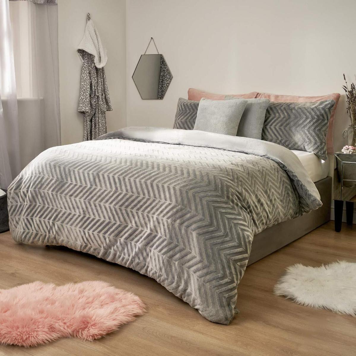 This cosy, warm flannel fleece duvet cover set from the Sienna range will be sure to modernise your room. The face shows a herringbone design and the reverse side is a plain soft fleece, the set comes with matching pillow case(s) to complete the look. This modern duvet cover is made from 100 soft warm polyester. The bedding set is soft, comfortable and durable, allowing for a relaxing nights sleep. Provides extra warmth on cooler nights, with a super soft touch to the skin.