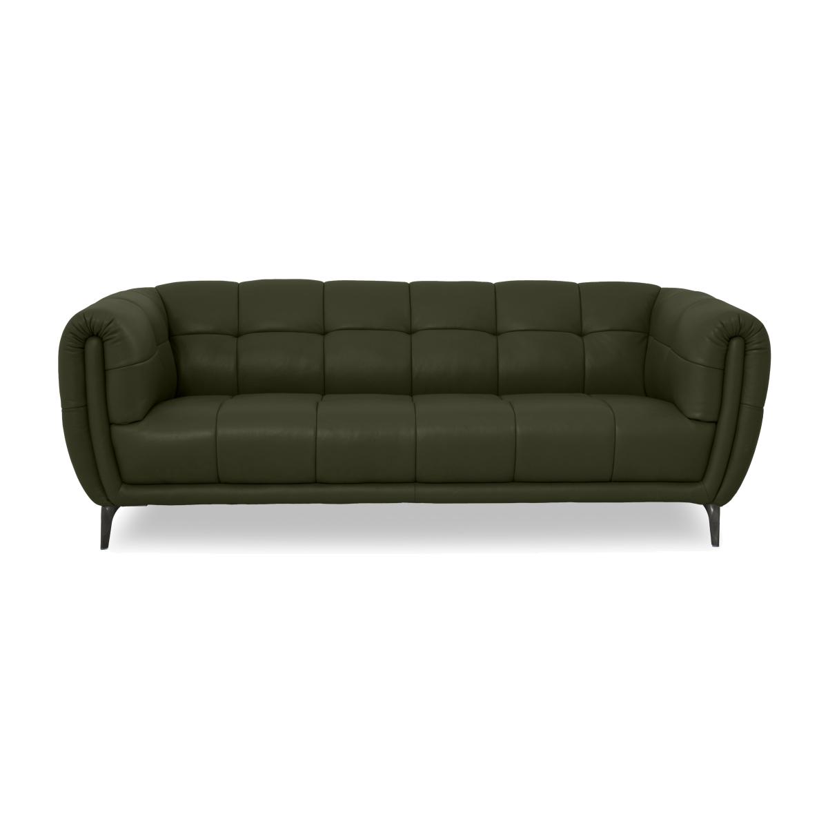 Striking style or superb comfort? With our Sienna range, you don’t have to choose. This collection of sofas, armchairs and footstools is modern and sophisticated. Sofas and chairs have eye-catching silhouettes with higher backs and curved arms that offer great support as well as an on-trend look. And talking of support, you’ll love the sprung seating platforms that mean every seat on a Sienna sofa is as comfy as the next. Plus, pocket-sprung seat cushion interiors promise exceptional comfort. Handcrafted exclusively for Furniture Village, the great-value Sienna range comes in a huge choice of 100% leather and fabric upholstery options. Modern sophistication in 100% leather. This fabulous three-seater sofa will transform your living space and is exceptionally comfortable too. Why you’ll love it A sophisticated, modern look with a striking silhouette and rounded arms. Eye-catching style at an exceptional price. With deeply cushioned curves that look and feel amazing. Sprung seats mean better weight distribution – no sinking into the corners. Pocket-sprung seat interiors and foam cushioning make this sofa simply irresistible. All-over buttoning creates a contemporary panelled look. Metal legs have a stylish titanium finish. Upholstered in 100% leather in a choice of colours. Handcrafted. A Furniture Village exclusive. This 3-seater leather sofa is part of our Sienna range. What you need to know Medium comfort level. Seat suspension: sinuous springs. Seat cushioning: pocket spring, foam and Dacron. Seat cushioning is fixed. Back suspension: webbing. Back cushioning: foam and Dacron. Back cushioning is fixed. Arm cushioning: foam and Dacron. Back and feet are removable for ease of access. Fixed seat and back cushions require smoothing and straightening regularly. To smooth and straighten fixed cushions, punch the back cushion’s top two corners and the seat cushion’s outer two corners, and pinch outwards. Leather has unique marks and characteristics with variation in colour and texture. Leather softens with use. Smoothing the tops of leather cushions prevents signs of visual comfort. Please read our upholstery care guide for more advice. Item code: SIEN3S--40-003