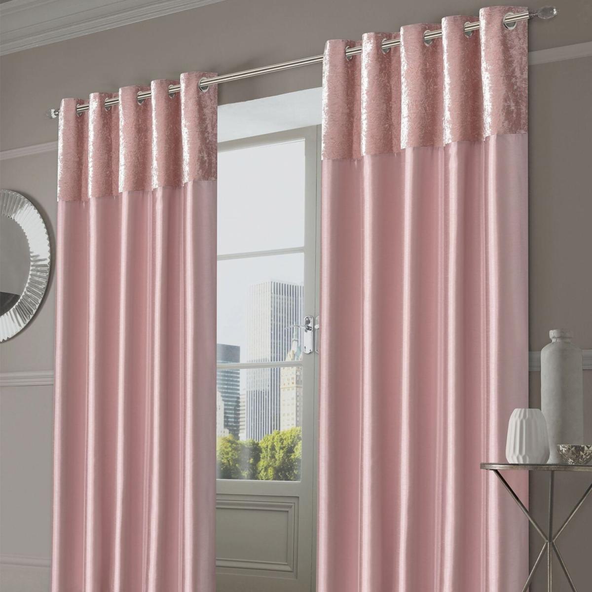 Sienna Pair of Crushed Velvet Band Fully Lined Eyelet Curtains - Pink / 228cm / 137cm