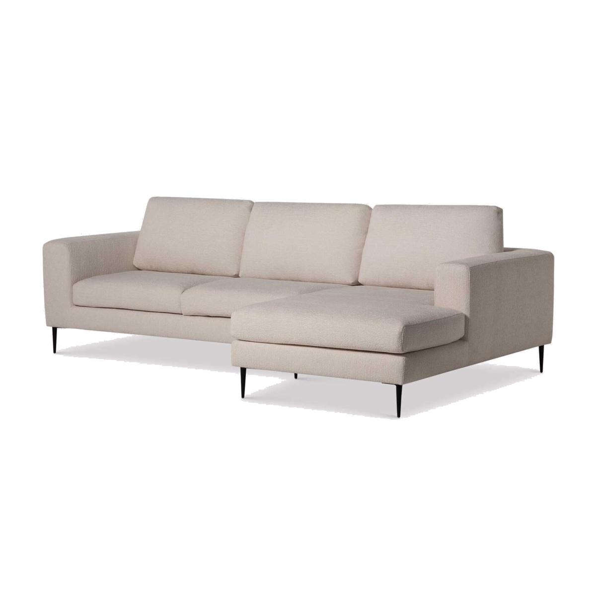The Sienna 3-Seater Right-Hand Facing Chaise offers a perfect blend of comfort and sophistication for any living space. Upholstered in a neutral-toned, 100% polyester fabric, it provides a soft, durable surface that's easy to maintain. The robust frame, constructed from pine wood, plywood, and hardwood, ensures long-lasting stability and support. Its sleek black steel feet add a modern touch while enhancing the overall strength and durability. Ideal for lounging or entertaining, the Sienna chaise is designed to elevate your home with its timeless style and exceptional comfort.