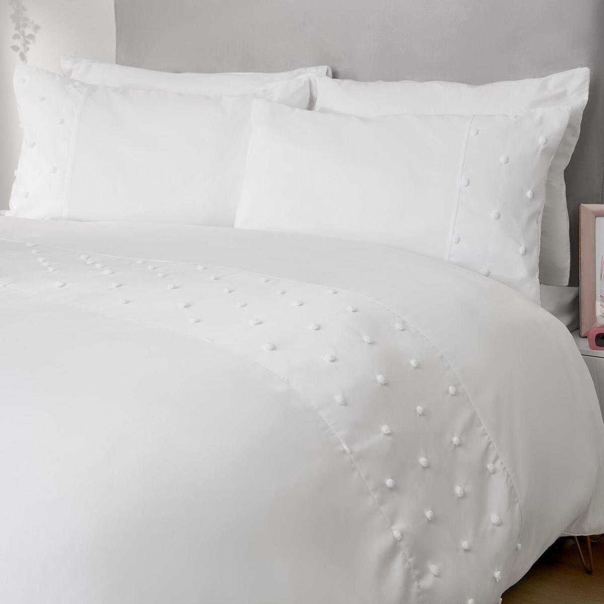 This tufted spotty panel duvet cover set from the Sienna range will be sure to modernise your room. The face features a soft tufted polka dot panel design and the reverse side is a smooth microfibre, the set comes with matching pillow case(s) to complete the look. This modern duvet cover is made from 100 polyester which is soft, comfortable and durable, allowing for a relaxing nights sleep. Panel Duvet - 40cm, Pillowcases 20cm.