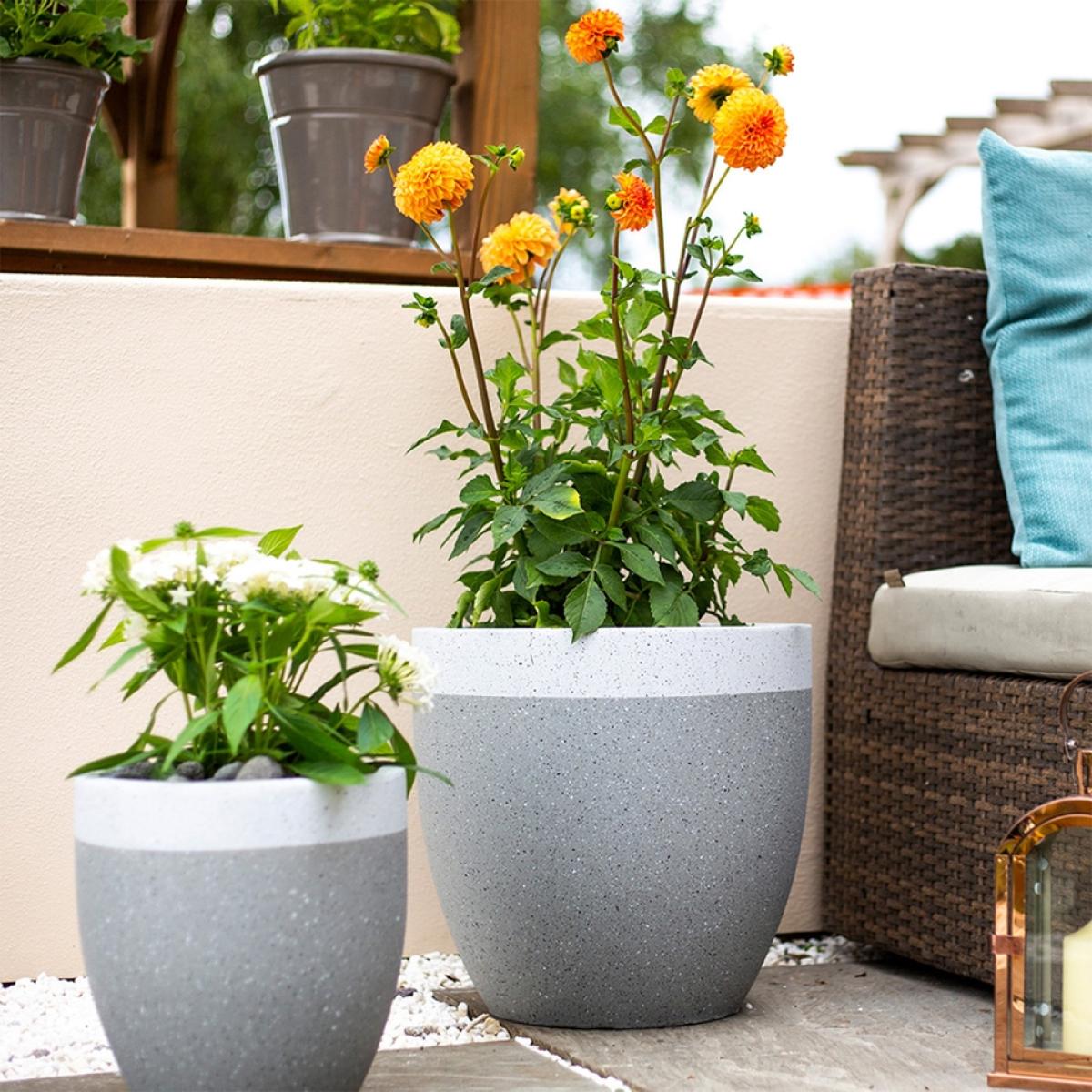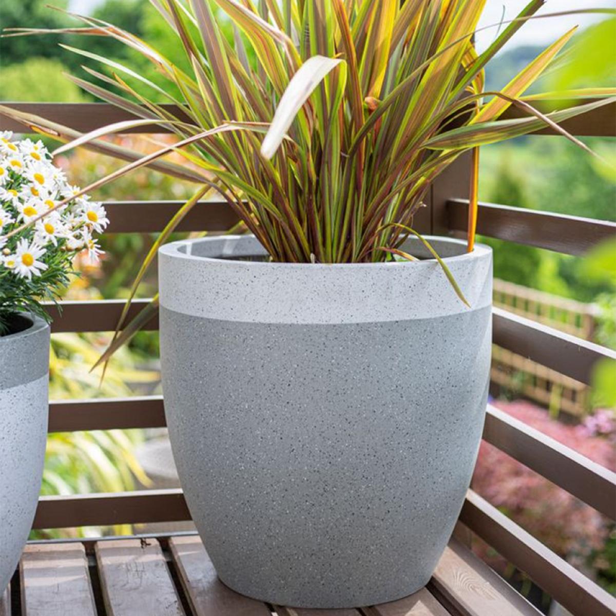 This contemporary two-toned planter with granite effect is guaranteed to add style to any outdoor space. Made from composite materials, this grey and white 44cm plant pot is lightweight, frost and UV resistant. Perfect to combine with other available shapes and sizes within the Sierra collection.